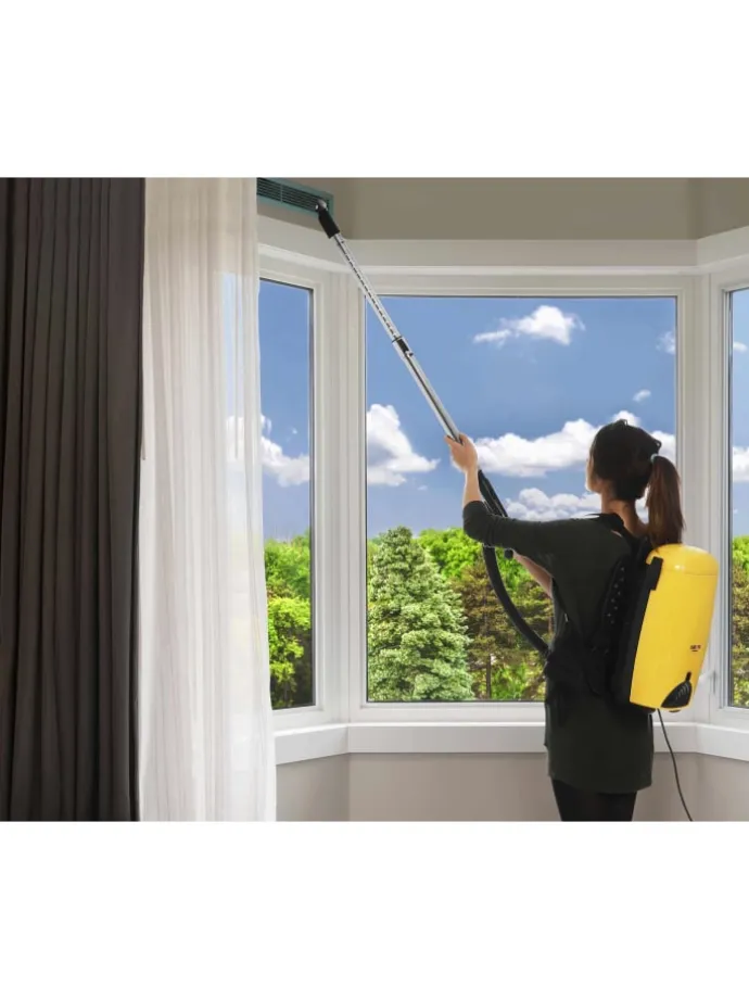 Den Melissa Backpack Vacuum Cleaner tragen Sie mit seinen breiten Tragegurten bequem auf dem Rücken und er gewährt so ein ermüdungsfreies Arbeiten. Für ganz schwer zugängliche Stellen oder für dicht zugestellte Regale hat der Melissa Backpack eine sehr praktische Blasfunktion, womit Sie den Staub einfach abblasen können.