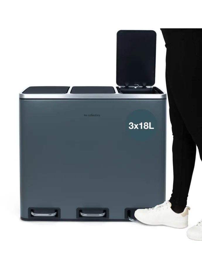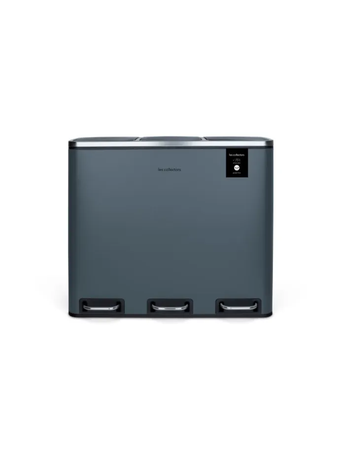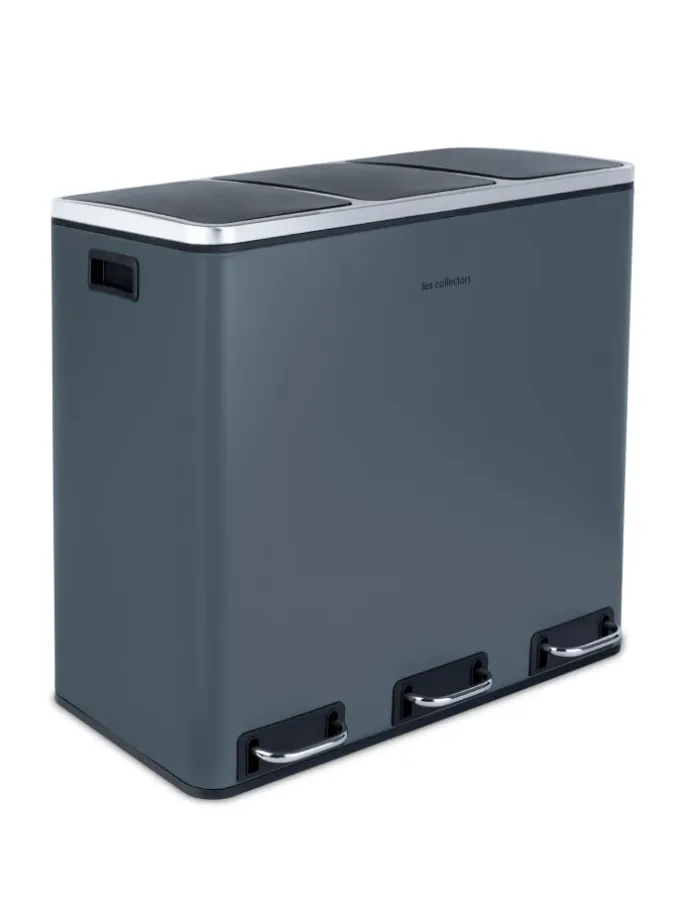 Der Küchenabfalleimer N°984 von der Marke Les Collectors hat ein Fassungsvermögen von 54 L und macht es Ihnen leicht, Ihren Abfall täglich zu sortieren. Organisieren Sie Ihr eigenes Abfallmanagement entsprechend Ihren Verbrauchsgewohnheiten. Dank seiner 3 Fächer mit separaten Deckeln können Sie jeweils nur einen Behälter öffnen und vermeiden so die Ausbreitung unangenehmer Gerüche, die von anderen Behältern stammen könnten. Die Deckel schließen langsam und leise für absoluten Komfort und Diskretion im täglichen Gebrauch. Seine 3 Metallpedale und sein Gehäuse aus Edelstahl sind ein Zeichen für Robustheit und Qualität. Die Eimer der einzelnen Fächer sind abnehmbar und haben einen Griff, der den Beutelwechsel und die Wartung erleichtert. Dank seines Designs und seiner Umweltfreundlichkeit passt der 54-Liter-Mülleimer N°984 von Les Collectors perfekt in jede Küche oder Büro.