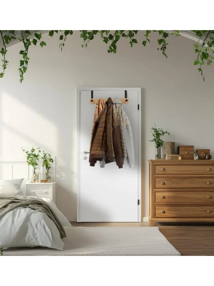 Du möchtest Jacken, Taschen oder andere Accessoires aufhängen, doch Dir fehlt der Platz? Dann ist diese Türhakenleiste im modernen Design ideal, egal ob für das Schlafzimmer, den Flur oder das Jugendzimmer. Der robuste Türaufhänger bietet an 5 Haken ausreichend Platz und hilft Dir somit, mehr Ordnung und Übersicht zu Hause zu schaffen. Die Garderobenleiste eignet sich dabei für gefälzte Türen und wird einfach auf die Tür gehängt.