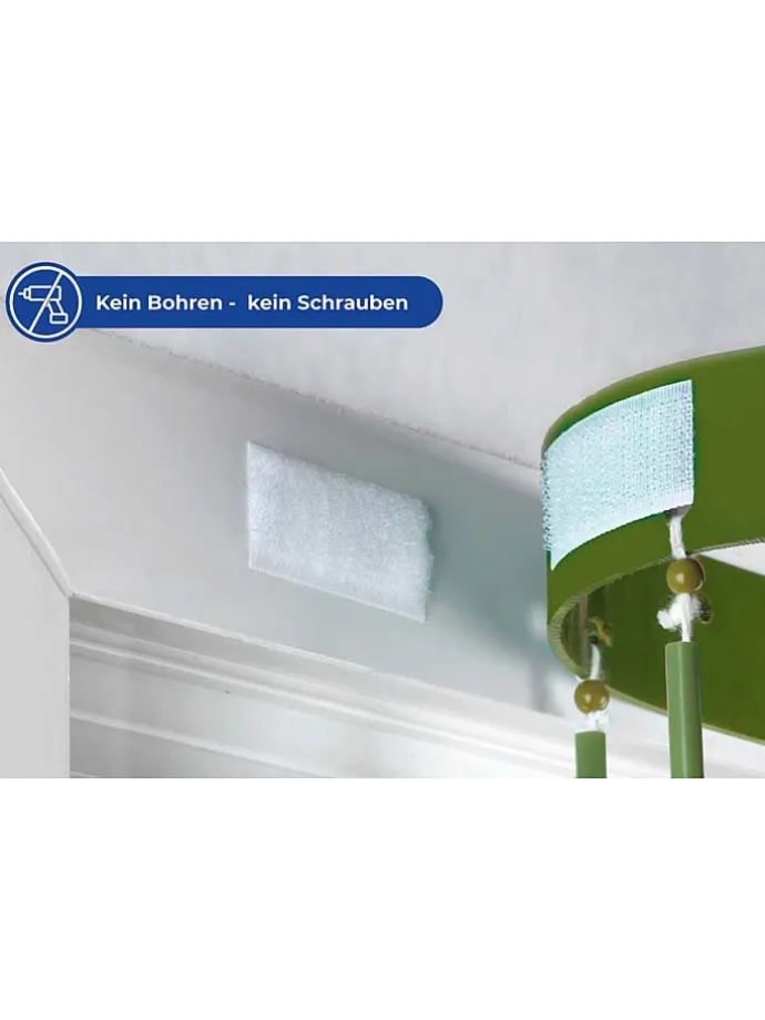– einfaches Anbringen ohne Bohren durch selbstklebende Klettpads