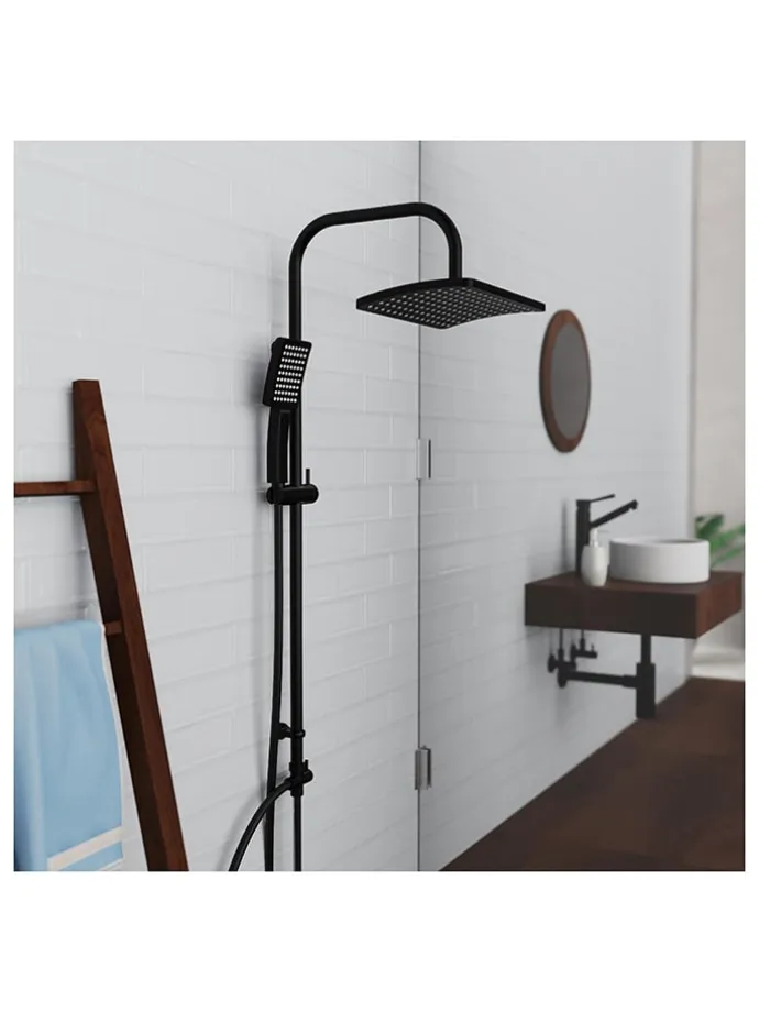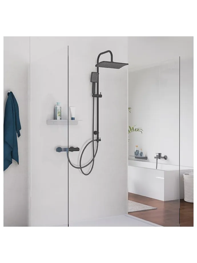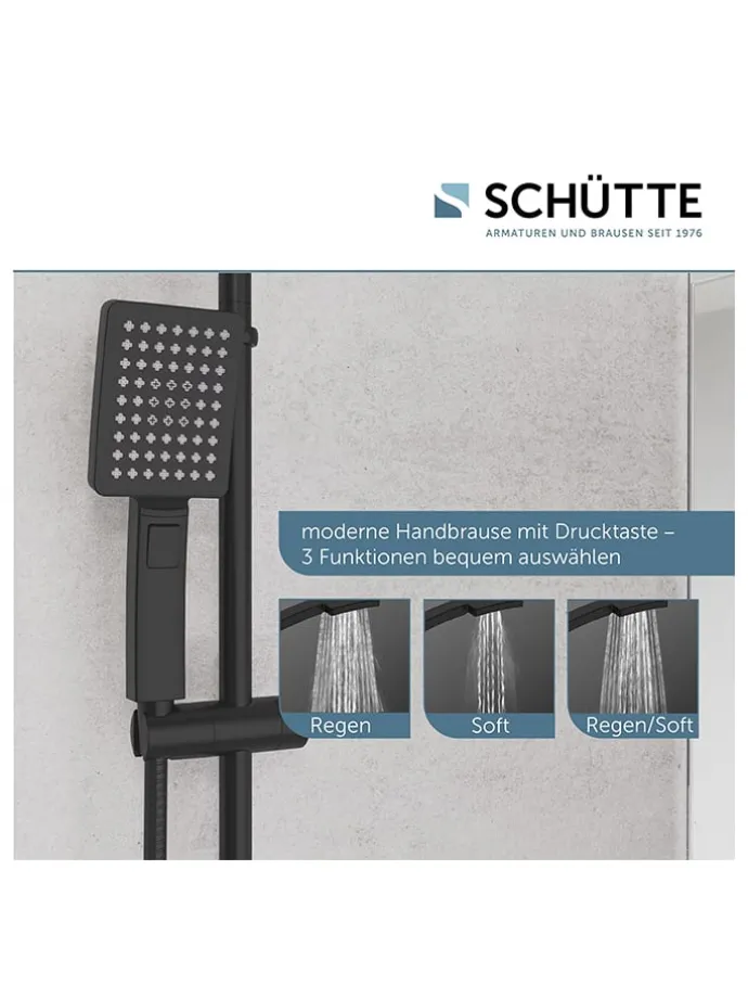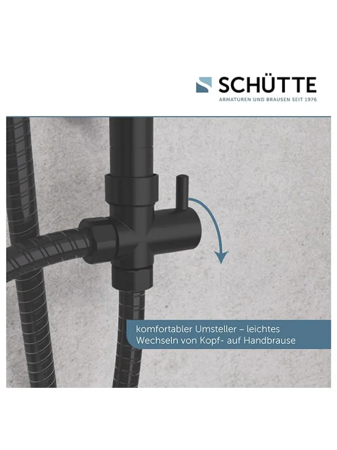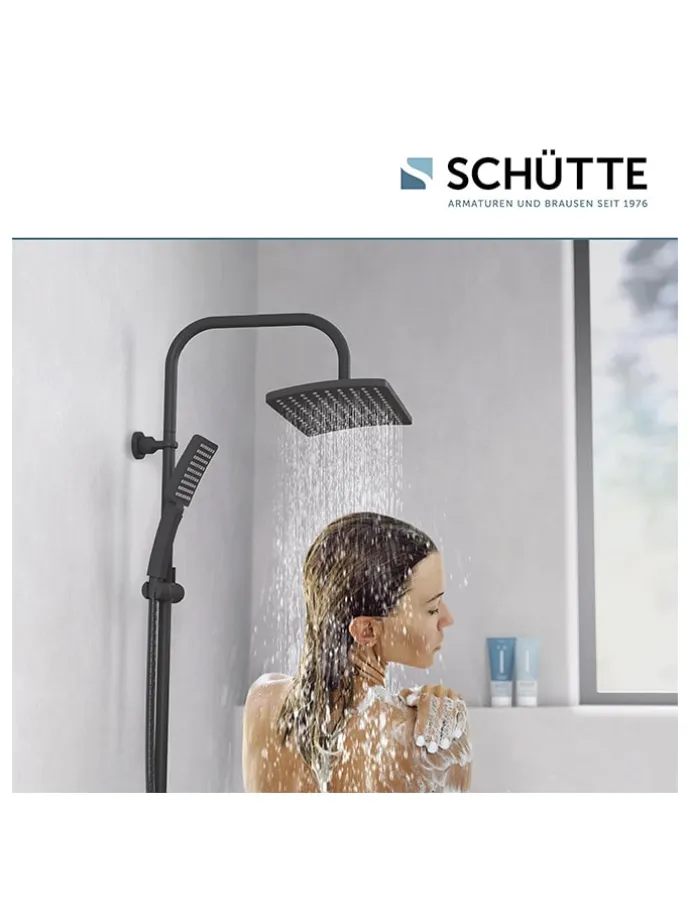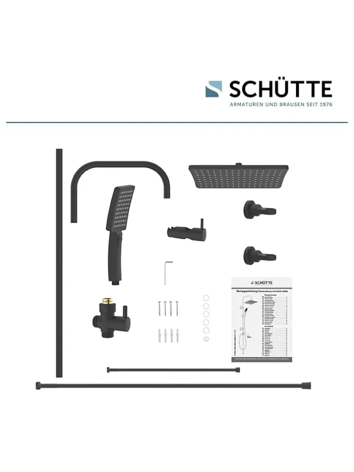 – Inhalt: Überkopfbrause, Handbrause, Brauseschlauch, Wandhalterung mit höhenverstellbarer Brausestange