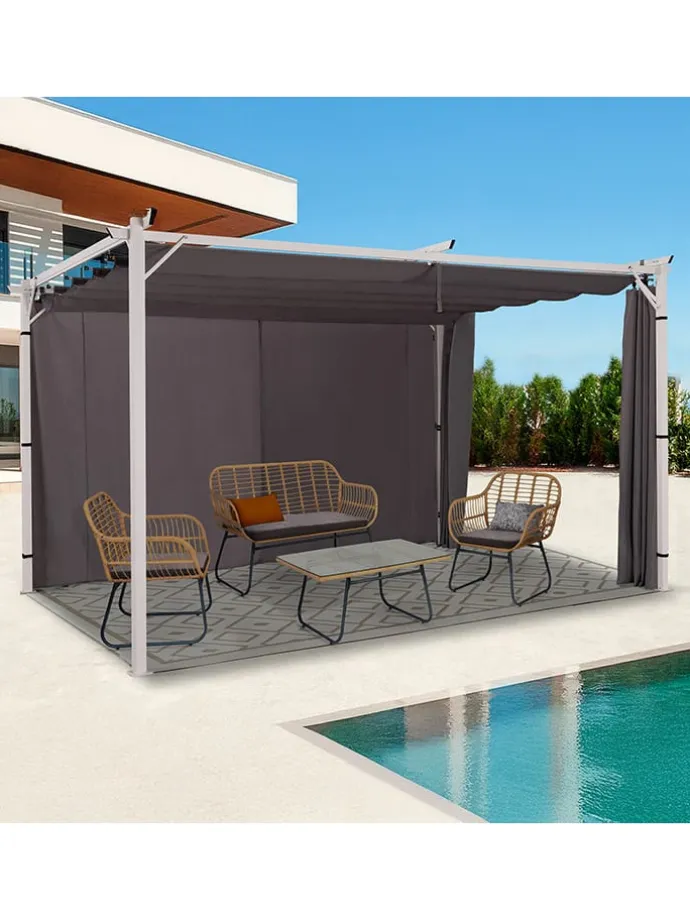 – ermöglicht die Abdeckung von 2 Seiten einer Pergola