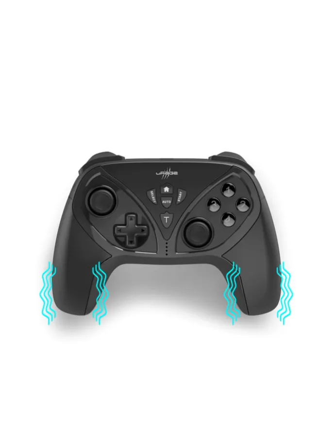 Mehr Kontrolle beim GameplayMit dem Gamepad Vendetta 300 Unleashed hast du deinen Gaming-Erfolg in den eigenen Händen. Der Controller eignet sich perfekt als Einsteigermodell. Die Steuerung läuft wie bei anderen Modellen über zwei Analog-Sticks und ein Steuerkreuz mit 8 Bewegungsrichtungen, außerdem gibt es 4 Aktionstasten auf der rechten Seite sowie je 2 Schulter- und Triggertasten auf jeder Seite. Natürlich dürfen auch ein Start-, Select- und Home-Button nicht fehlen.Dank der Zusatztasten dem Gegner immer einen Schritt vorausZusätzlich verfügt das Gamepad von uRage über eine Mode-Taste, mit der man ganz einfach zwischen D-Input und X-Input wechseln kann, sowie 4 Zusatztasten, die frei belegt werden können und somit einen Vorteil in engen Gefechten oder schnelleres Bauen in Open-World Games ermöglichen.Action im Spiel und in deinen HändenDie Dual-Vibration gibt bei jedem Treffer, jeder Explosion oder jedem Tor ein direktes haptisches Feedback. Je nach Situation, Trefferhärte, etc. passt sich auch die Vibration an und reagiert entsprechend stark oder schwach. So bist du immer mittendrin im Spielgeschehen.nbsp;Anti-Rutsch-Beschichtung: Gib den Sieg nicht mehr aus der HandDurch die Anti-Rutsch-Beschichtung ist auch bei rasantester Action oder nervenzerreißender Verlängerung optimaler Halt geboten. Dadurch bleibt der Sieg zum Greifen nah und wird dir nicht so leicht aus den Händen gerissen.Mehr Freiheiten dank 2,4-GHz-Wireless-VerbindungDank der Funkverbindung mit bis zu 10 Metern Reichweite hast du beim Gaming immer maximale Bewegungsfreiheit. Und sollte der Akku doch mal leer sein, kannst du das Gamepad ganz einfach per mitgeliefertem USB-Kabel wieder aufladen und trotzdem weiterspielen.nbsp;