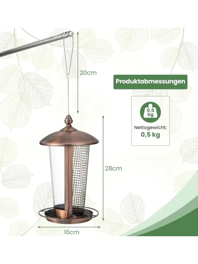 Der stabile, runde Metalldeckel bietet Vögeln Schatten und schützt sie vor Sonne und Regen