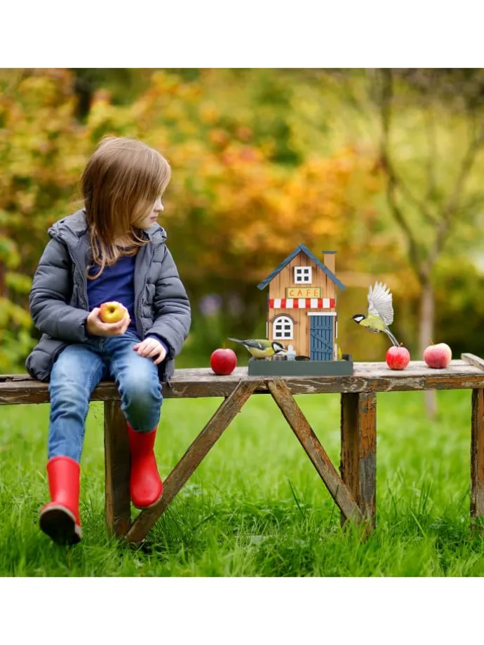 Machen Sie kleinen Wildvögeln im harten Winter oder in der warmen Jahreszeit mit dieser Futterstation eine Freude. Dank der Aufhängung kann die dekorative Vogelstation im Stil pittoresker, französischer Cafés an einem Ast befestigt werden. Die klappbare Dachschräge der Futterstelle aus Holz macht Ihnen das Einfüllen von schmackhaftem Futter einfach. Somit können Sie und Ihre Lieben die Vögel entspannt beim Fressen beobachten und sich an ihrer Gegenwart erfreuen – ein Spaß für die ganze Familie!