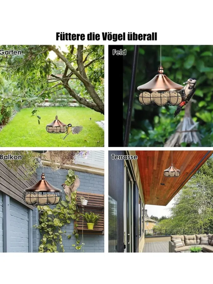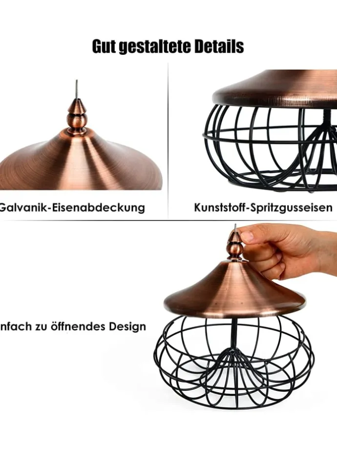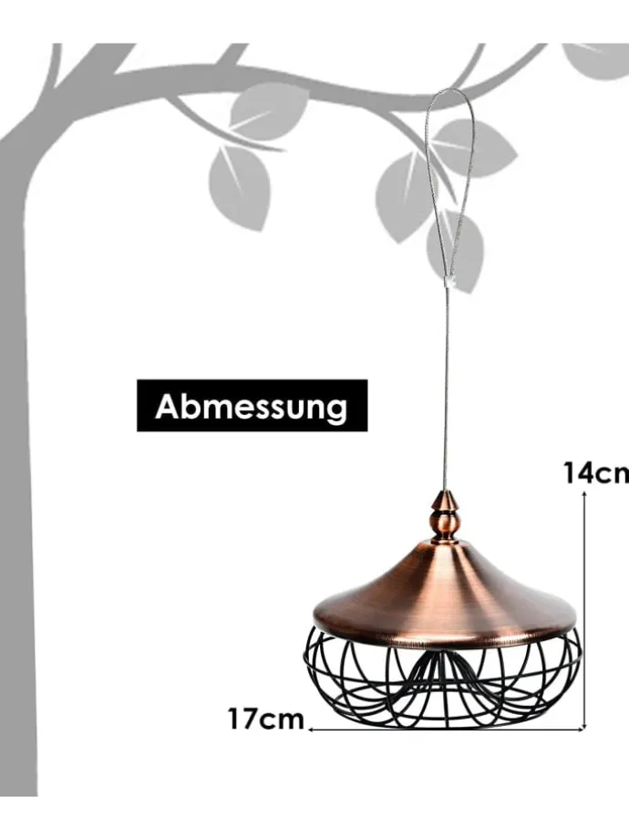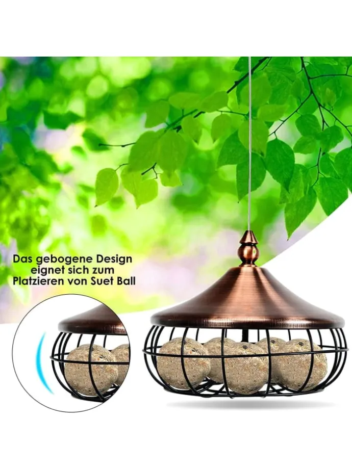 Beobachten Sie die Vögel, die zu diesem Vogelfutterspender in Ihrem Garten fliegen. Das zarte und elegante Design kann eine perfekte Dekoration für Ihren Garten oder Garten sein. Durch seine runde und geschwungene Form eignet sich dieses Vogelfutterhäuschen hervorragend für die Aufnahme vieler Meisenknödel. Außerdem lässt sich das Futter leicht nachfüllen, indem der Deckel abgeschraubt wird. Ausgestattet mit einem hochwertigen Eisenrahmen ist der Futterspender extrem haltbar und robust. Der Netzkörper eignet sich auch zur Beobachtung des Futters, um es rechtzeitig nachzufüllen. Dies ist ein großartiges Geschenk für Eltern, Naturliebhaber und Kinder, denn die Freude daran, ein hungriges Tier zu füttern, ist unbezahlbar.
