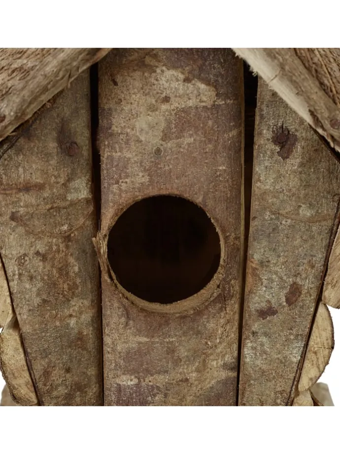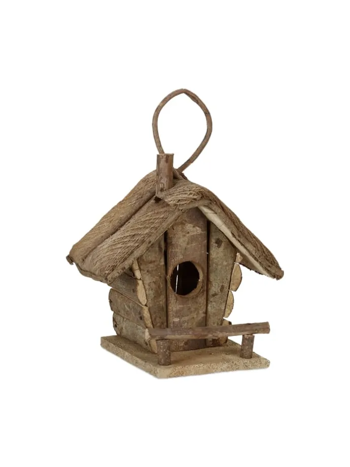 Dieses Mini Holzhaus ist ein toller Hingucker für Ihr Zuhause. Das unbehandelte Holz verleiht dem authentischen Vogelhaus einen urigen Charme. An den angebrachten Schlaufen können Sie das Minivogelhaus aufhängen oder es einfach dekorativ auf die Terrasse oder den Balkon stellen. Geschmückt mit Blumen, Dekor oder Vogelfiguren versprüht das Vogelhäuschen eine wohlige Atmossphäre. Das Dekohaus ist zudem eine schöne Geschenkidee für Vogelfreunde.