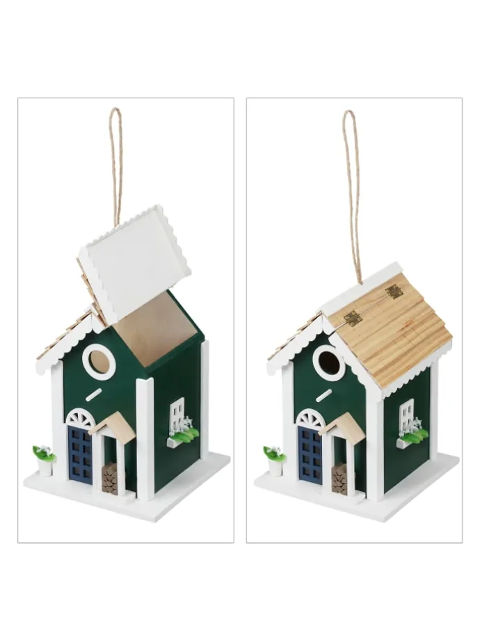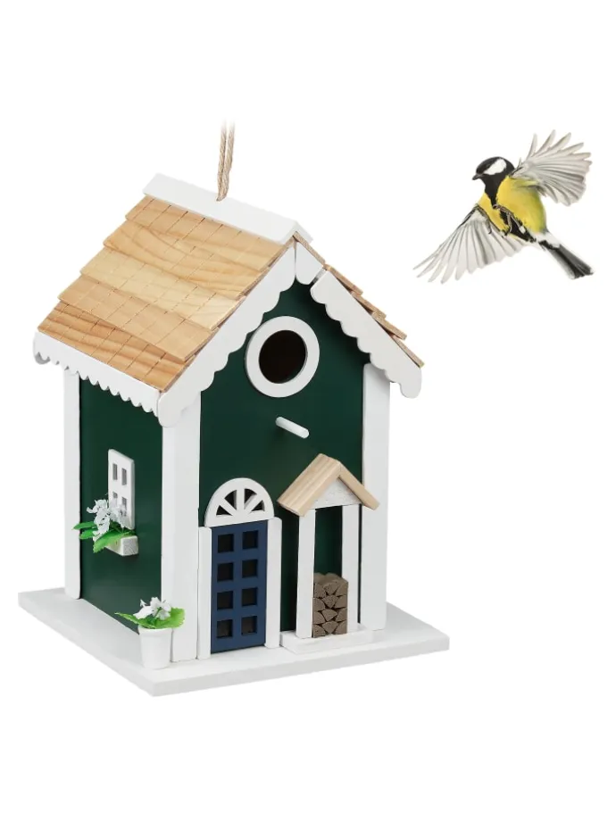 Dieses Vogelhäuschen ist ein toller Hingucker für Ihr Zuhause. Mit seiner niedlichen Hausform und dem kleinen Flugloch ist das Amselhaus ein dekorativer Nistkasten für kleine Wildvögel. Die ansprechende Landhaus Optik gibt den Vögeln ein richtiges Zuhause mit schickem Flair im Garten, auf dem Balkon oder der Terrasse. Hängen Sie die Vogelvilla auf oder platzieren Sie es stehend. Auch als Geschenk zur Hochzeit oder für Vogelfreunde ist das Holzhäuschen eine tolle Idee.