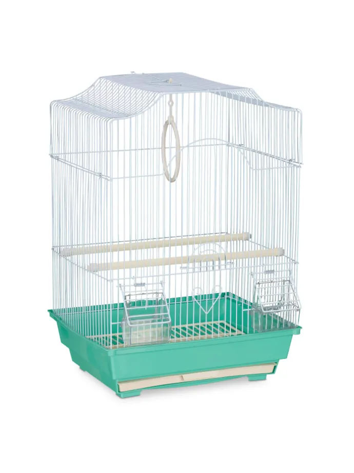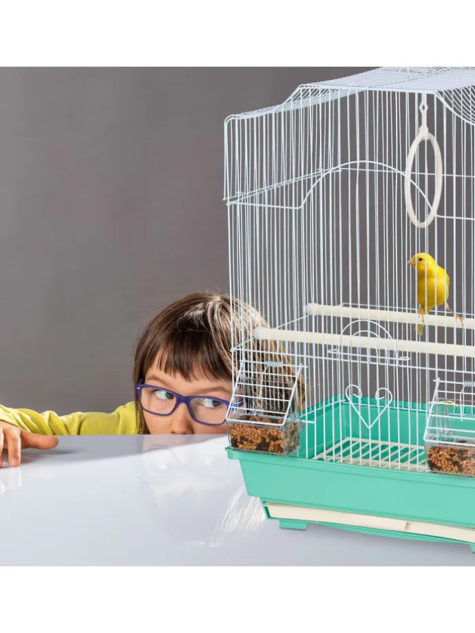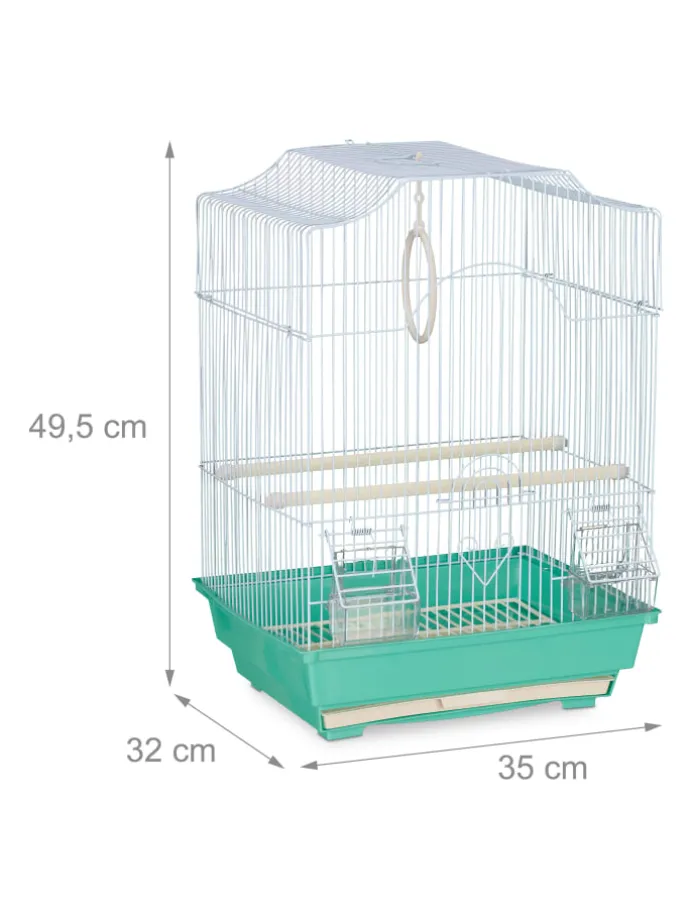 Geben Sie Ihrem gefiederten Freund ein wohliges Zuhause mit diesem Sittichkäfig. Der Käfig ist ideal für kleine Vögel, wie Kanarienvögel, Finken und ähnliche Arten. Dabei kann der Piepmatz mit der Schaukel spielen oder bequem auf den Sitzstangen Platz ruhen. Den Schmutz entfernen Sie unkompliziert über die ausziehbare Schublade. Zur Reinigung und zum Auffüllen der Näpfe können Sie diese leicht von außen abnehmen. Ein Spannmechanismus sorgt dabei für sofortiges Zuschnappen der Fensteröffnung.