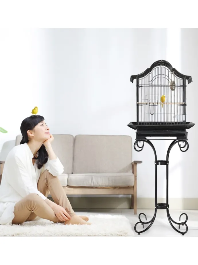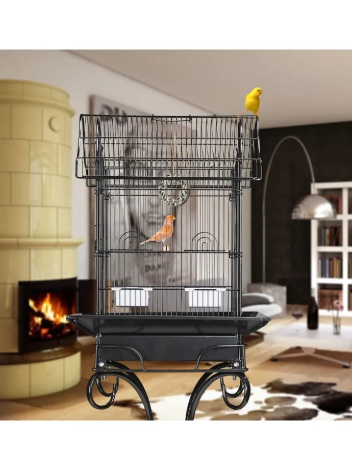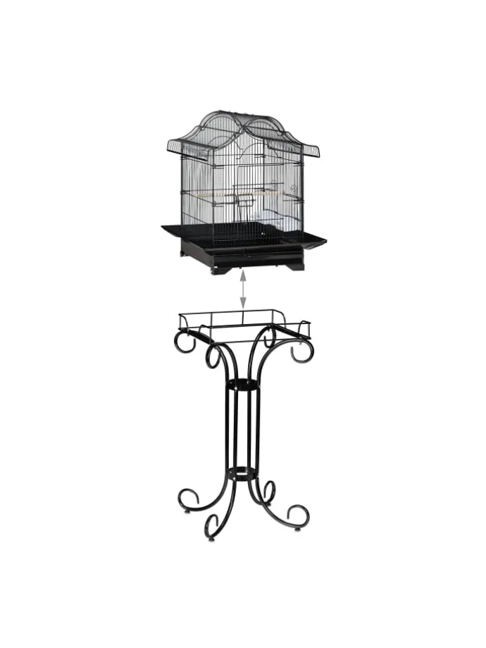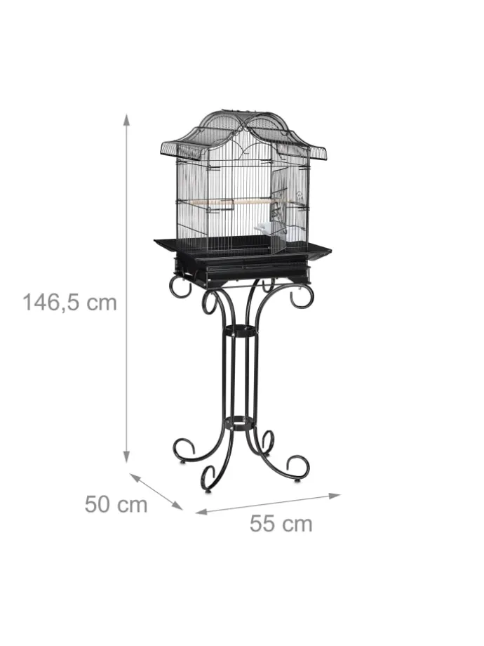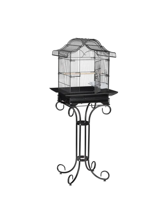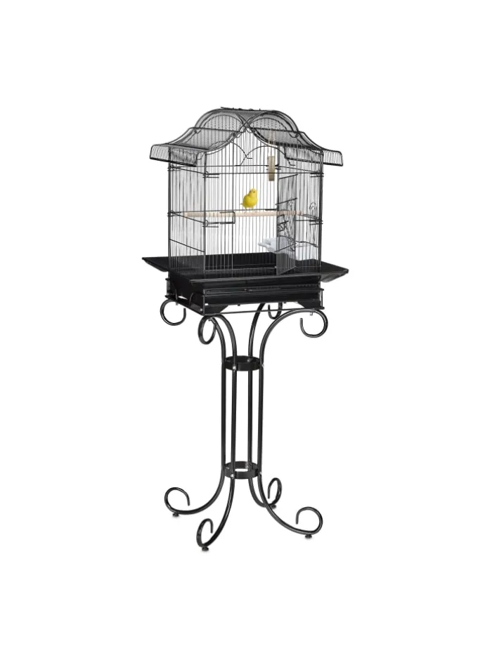 Sorgen Sie für Ihren gefiederten Freund und geben Sie ihm ein wohliges Zuhause! Der Käfig ist ideal für kleine Vögel, wie Kanarienvögel, Zebrafinken und Rosenköpfchen. Auf der Sitzstange kann der Piepmatz bequem ruhen und die Flügel strecken. Schmutz entfernen Sie unkompliziert über die Schublade und die Fenster sind hochschiebbar für eine einfache Napfauffüllung. Das elegante Vogelheim mit asiatischem Runddach ist zudem ein echter Blickfang und unterstützt stilvoll Ihre Einrichtung.