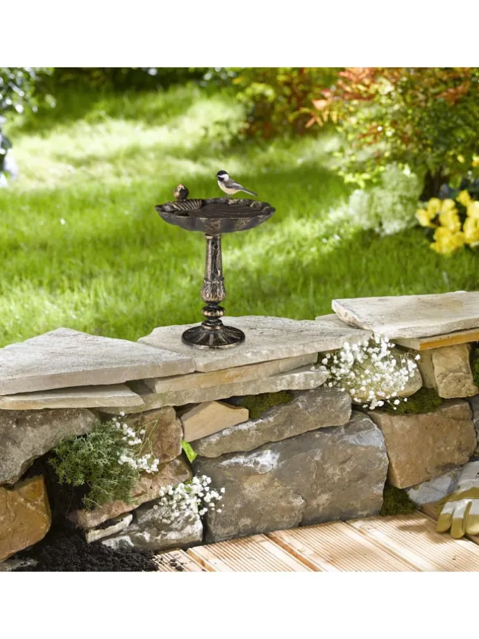 Erfreuen Sie sich am Anblick von Wildvögeln, die diese Vogeltränke in Ihrem Garten besuchen. Auch ohne kleine Piepmätze, die sich am Vogelbecken mit Wasser versorgen, ist die Wasserschale ein Deko-Highlight. Der Ständer im Vintage Design verfügt über eine Wassertränke in Form einer Muschel. Die wetterfeste Vogeltrinkschale kann das ganze Jahr über draußen gelassen werden. Entscheiden Sie selbst, ob Sie Ihren tierischen Gästen Wasser oder Erdnüsse und andere Leckereien anbieten wollen.
