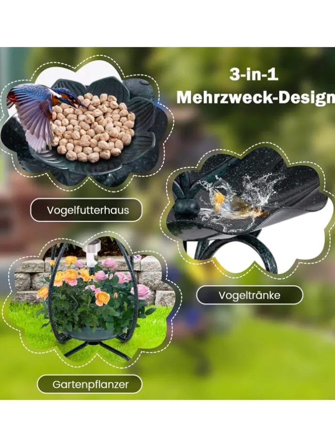 Blumenförmiger oberer Futterteller ist eine perfekte Vogelfutterstelle