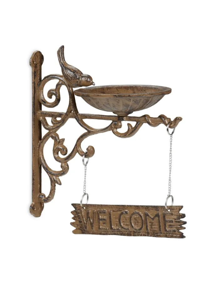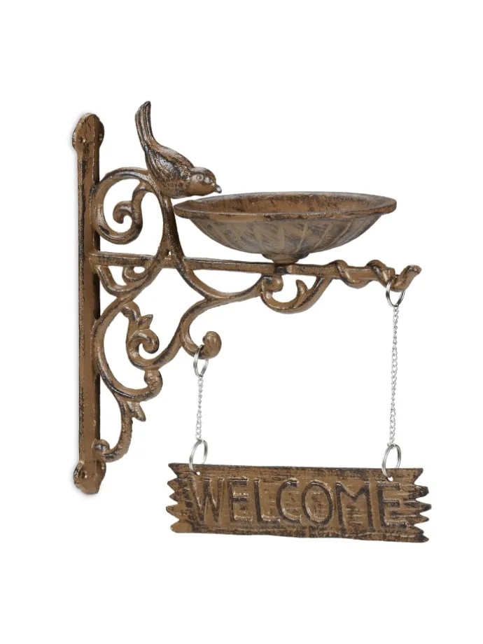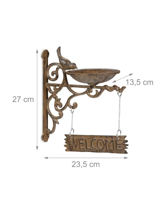 Besonderes Highlight ist das Willkommensschild mit englischer Schrift. Bescheren Sie Ihren Besuchern einen warmen Empfang. Die Wassertränke ist wetterfest und rostfrei, weshalb sie problemlos das ganze Jahr über draußen gelassen werden kann. Auch zur Aufhängung von leichten Laternen ist der Wandhaken bestens geeignet.