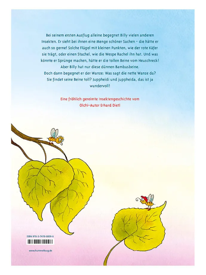 Billy hat soo lange Beine – darüber ist er gar nicht froh! Viel lieber hätte er Flügel wie der rote Käfer oder einen Stachel wie die Wespe Rachel. Und was könnte Billy tolle Sprünge machen mit den Beinen vom Heuschreck! Aber die Wanze, die ist von Billys dünnen Beinen hin und weg: