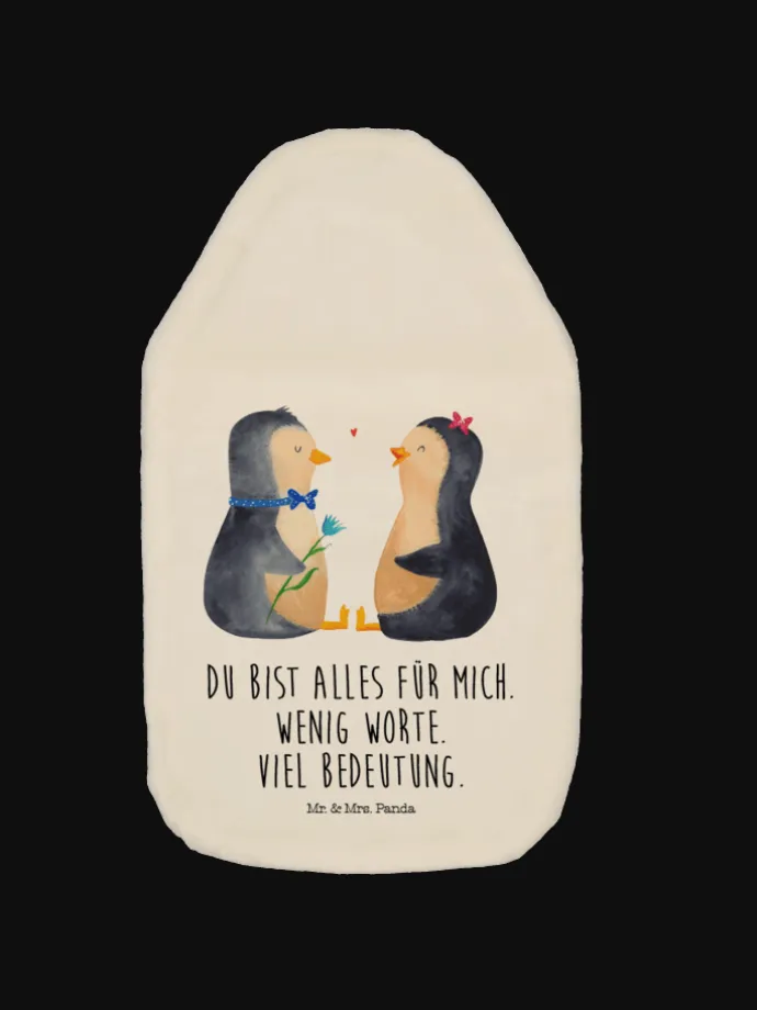 Mit der Mr. & Mrs. Panda Wärmflasche holst du dir Wohlfühlmomente nach Hause. Die Kombination aus hochwertigem Naturkautschuk und einem flauschigen Bezug sorgt für eine gleichmäßige und langanhaltende Wärme. Geschmückt mit liebevollen Motiven und Sprüchen, wird sie schnell zu einem unverzichtbaren Begleiter. Der Bezug ist abnehmbar und lässt sich leicht reinigen, was die Handhabung besonders einfach macht. Ob als sanfte Einschlafhilfe oder für gemütliche Stunden auf dem Sofa, sie bietet Komfort und Wärme.
