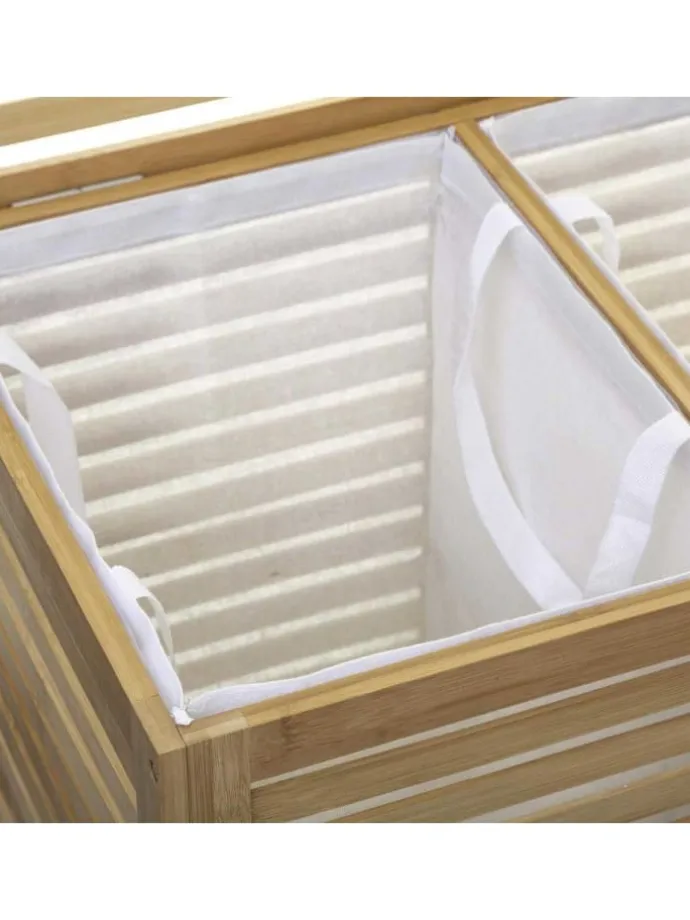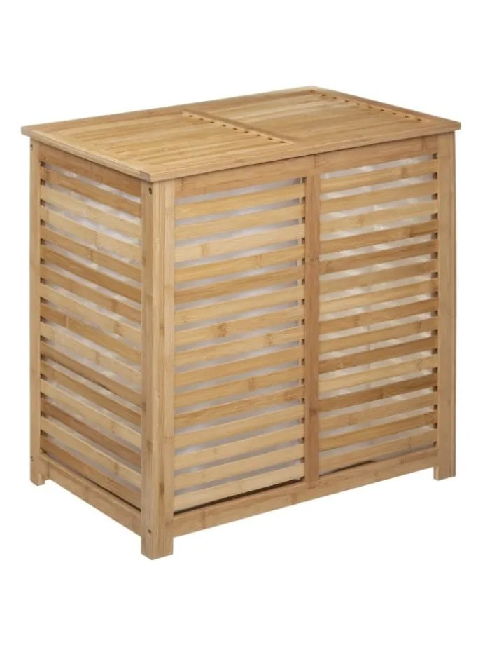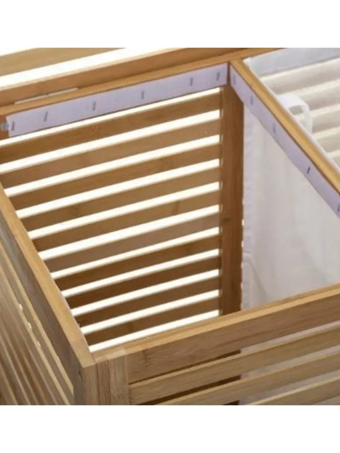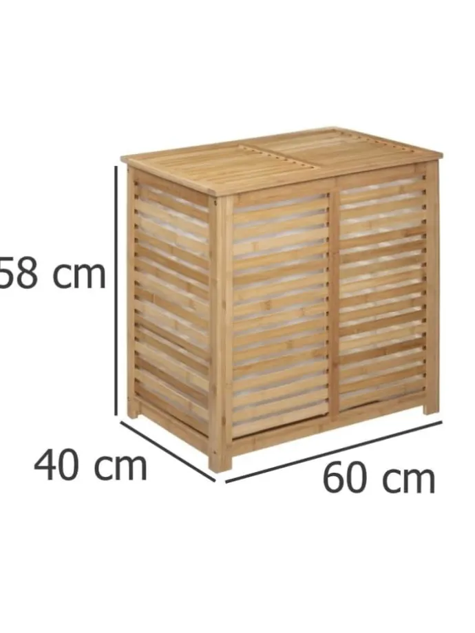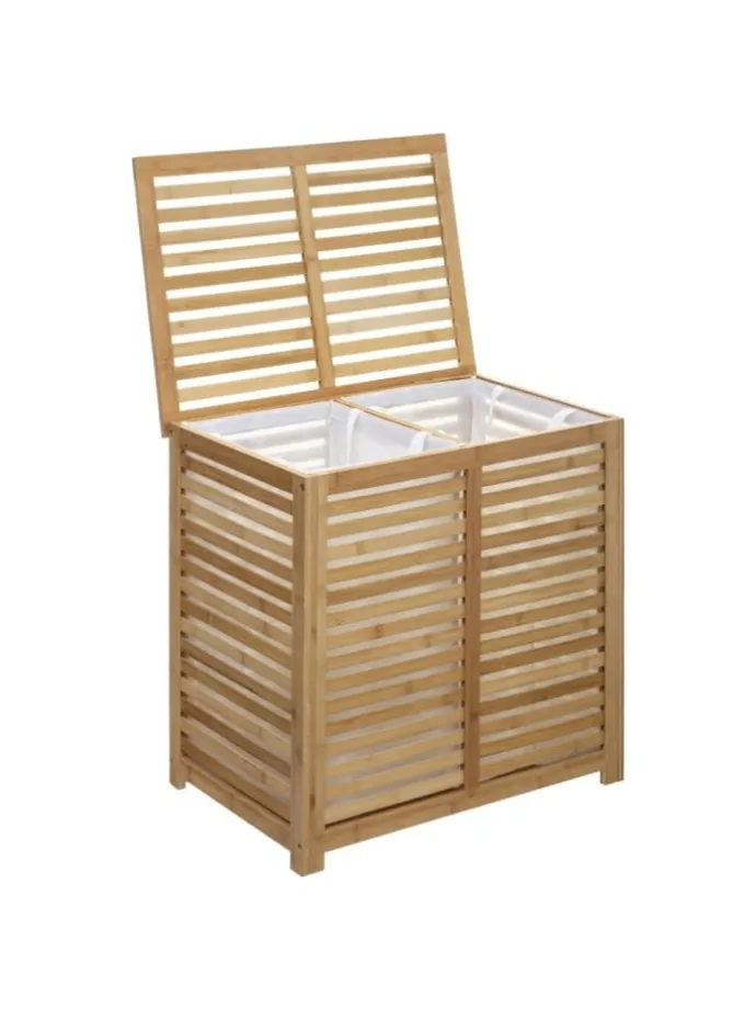 Wäschekorb, Doppel-, 2-Kammer-, SICELA, Bambus-Naturbambus sorgen dafür, dass Ihre Kleidung, die zum Waschen bestimmt ist, ihren Platz hat und immer zur Hand ist. Praktische Form und große Kapazität garantieren dem Raum eine große Menge an Kleidung, die ein ästhetisches Staufach für ihre Aufbewahrung findet.