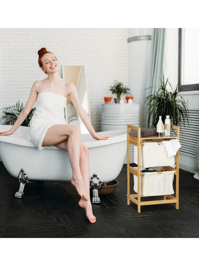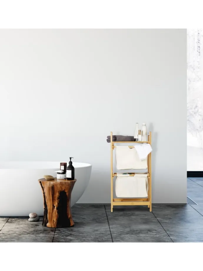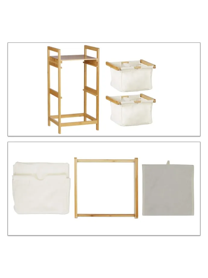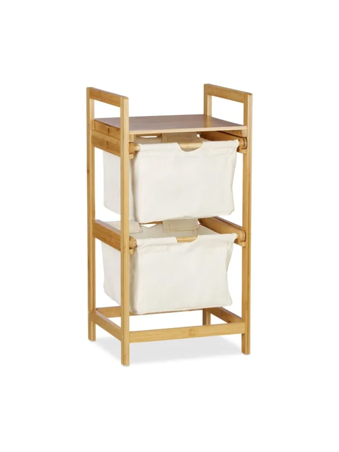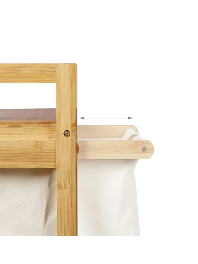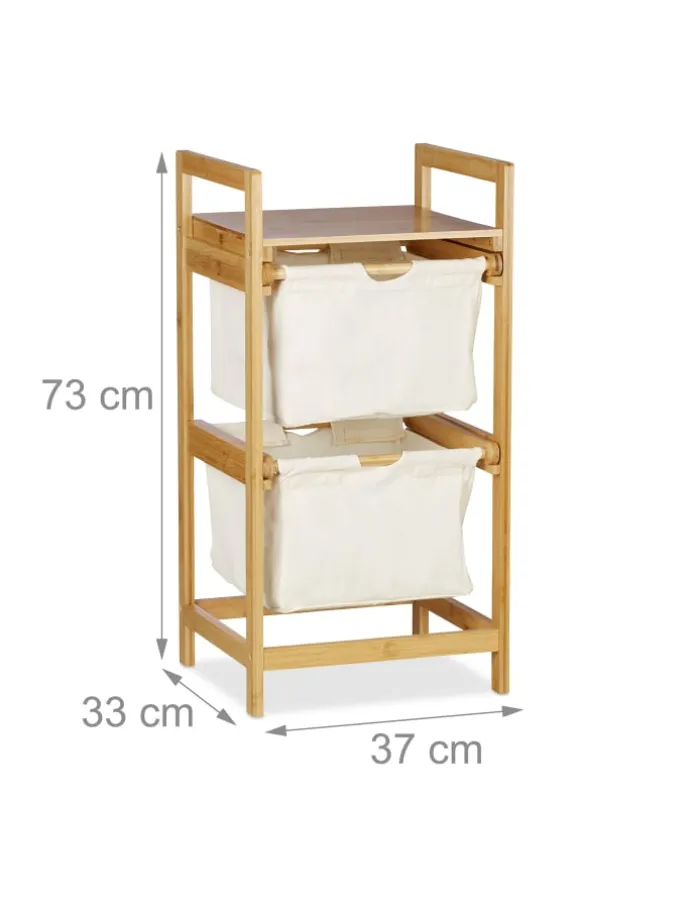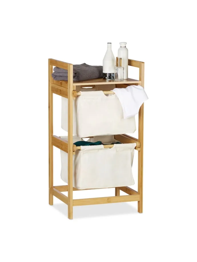 Jeden Tag fällt eine ganze Menge Wäsche an, die irgendwo aufbewahrt werden muss. Der moderne Wäschesammler mit robustem Gestell aus Bambus und einem Wäschesack aus Stoff sorgt für Ordnung und ist zugleich eine stilvolle Aufbewahrungsmöglichkeit Ihrer Wäsche im Bad oder Schlafzimmer. In dem Wäschbehälter können Sie Ihre Kleidung dank 2 getrennter Fächer bequem sortieren. Danach schieben Sie die Schubladen wieder hinein und Ihre Schmutzwäsche ist bis zum nächsten Waschgang diskret verstaut.