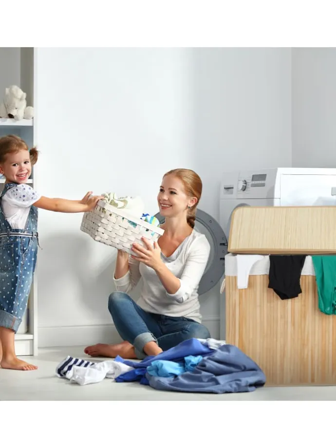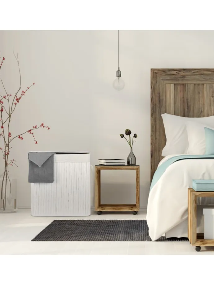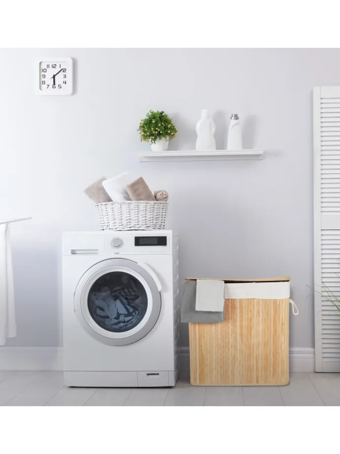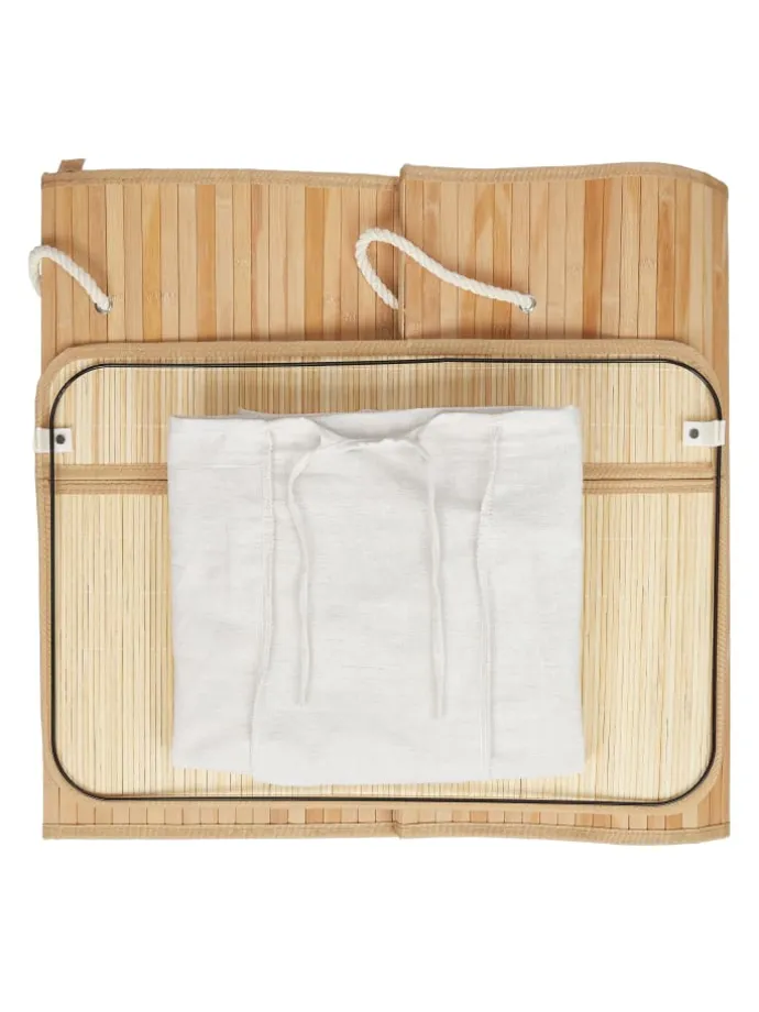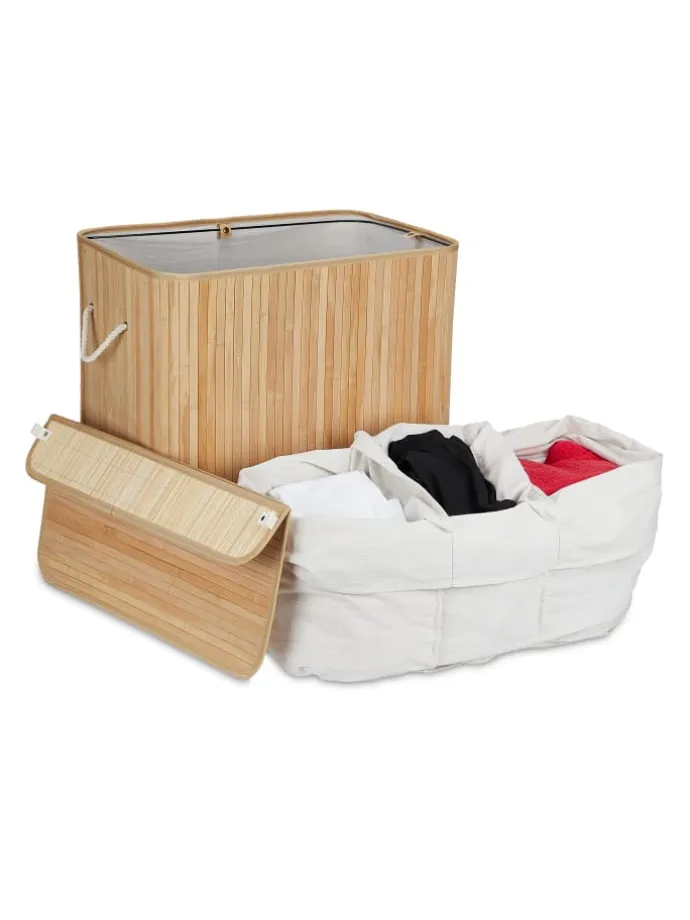 Mit dem dekorativen Wäschetrenner aus Bambus ist das Vorsortieren Deiner Wäsche ein Kinderspiel. In 3 Fächern teilst Du Deine Schmutzwäsche in Hell, Dunkel und Bunt und beugst unschönen Verfärbungen beim Waschgang vor. Die Fertigung aus natürlichem Bambus macht die Wäschetonne zum optimalen Haushaltshelfer für Feuchträume. Dank des Deckels wird Deine Schmutzwäsche diskret und geruchsdicht aufbewahrt. Bei Bedarf kann der Wäschetrenner zusammengefaltet und verstaut werden.