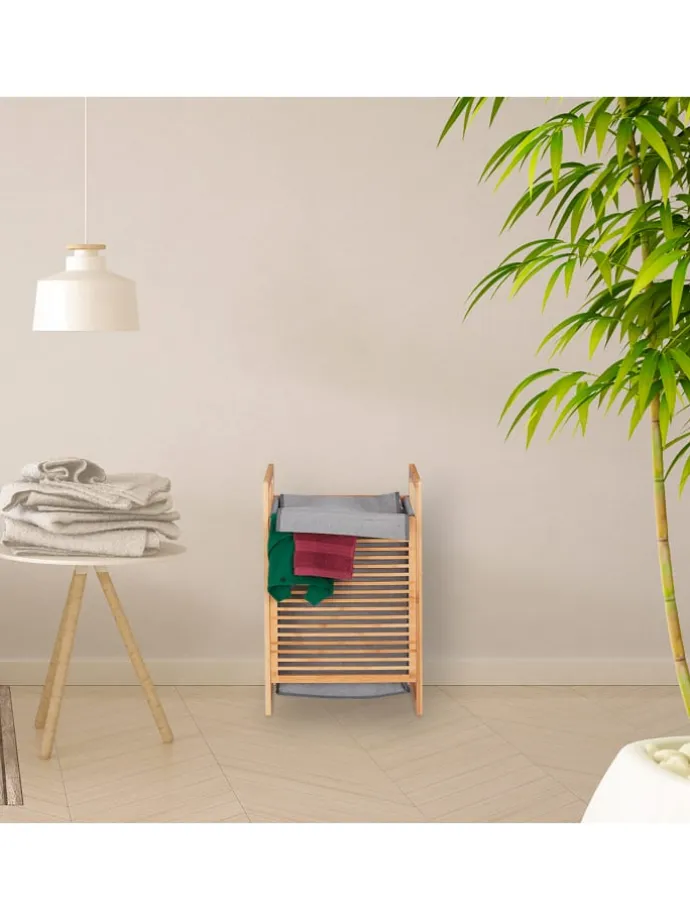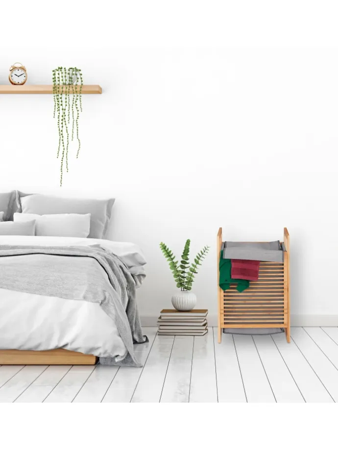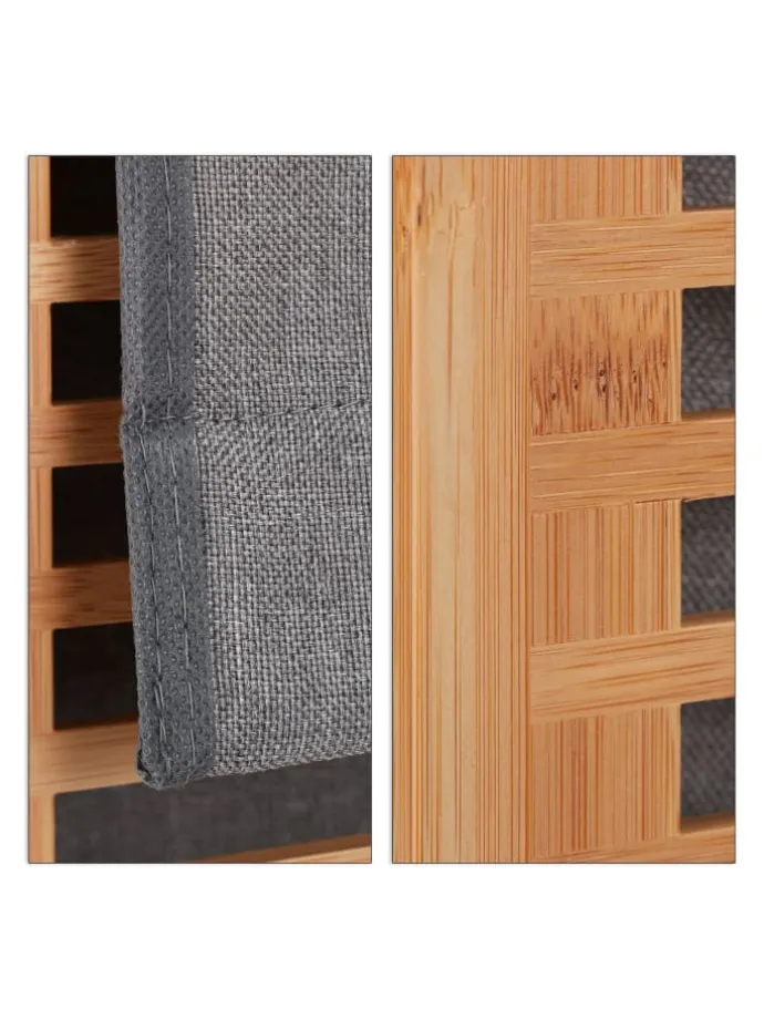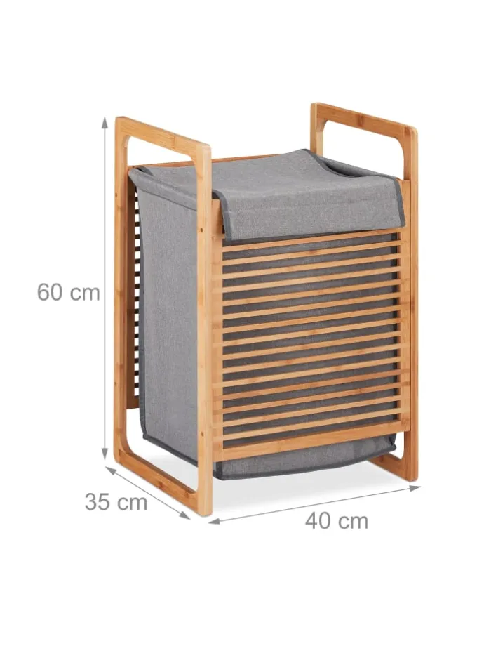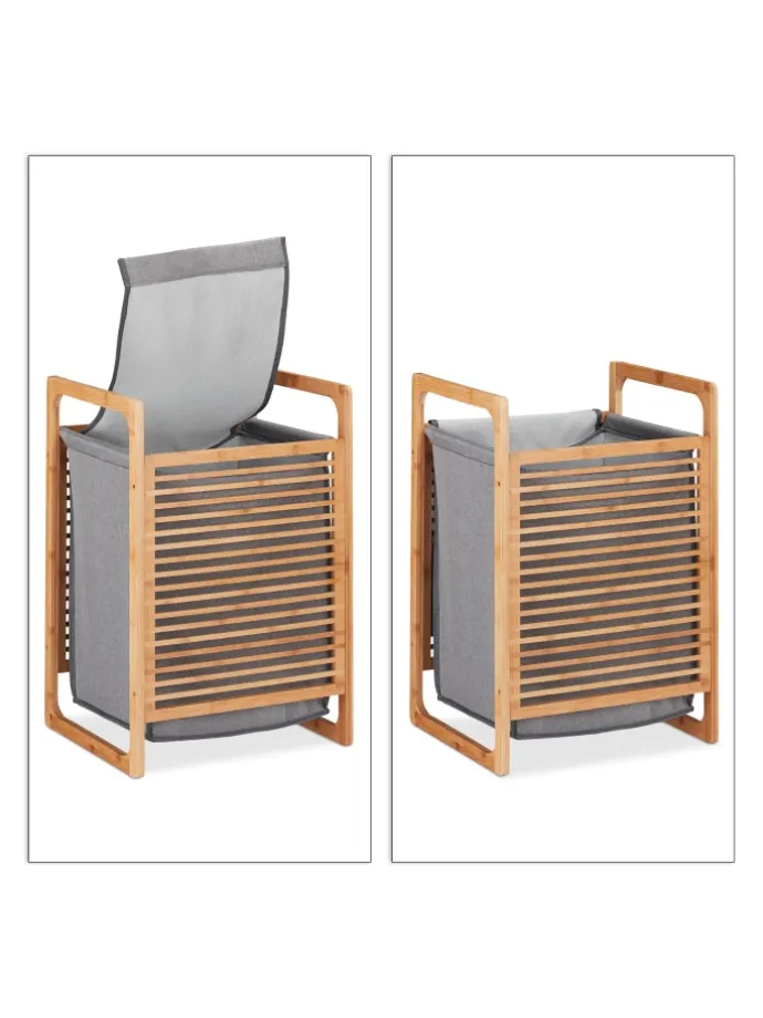 Jeden Tag fällt eine ganze Menge Wäsche an, die irgendwo aufbewahrt werden muss. Der stabile Dreckwäsche-Sammler mit hellem Gestell aus natürlichem Bambus und einem Wäschesack in Grau sorgt für Ordnung und ist zugleich eine stilvolle Aufbewahrungsmöglichkeit Ihrer Wäsche im Bad oder Schlafzimmer. In die eckige Wäschekiste mit weiter Öffnung werfen Sie Ihre Wäsche einfach hinein. Danach schließen Sie den Deckel und Ihre Schmutzwäsche ist bis zum nächsten Waschgang diskret verstaut.