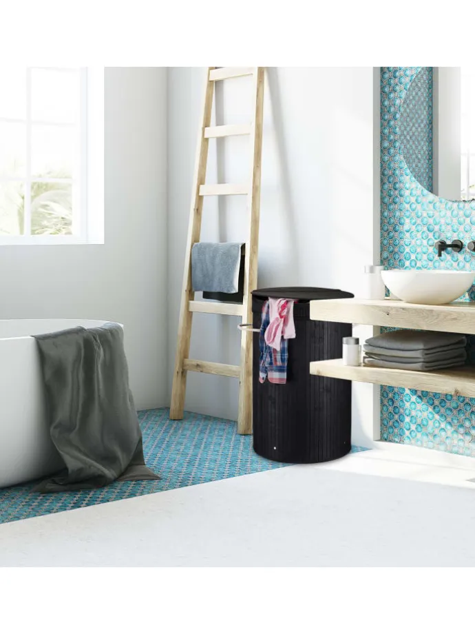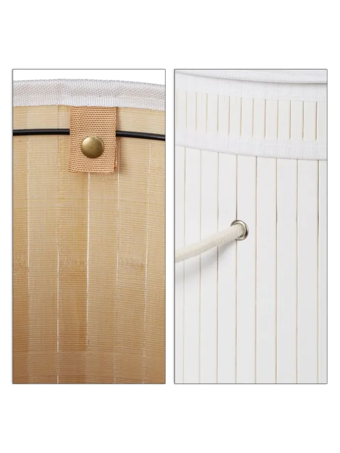 Holen Sie sich den idealen Wäschekorb für Schlafzimmer, Bad oder Keller nach Hause. Die Fertigung aus Bambus macht die Wäschetonne zum optimalen Möbel für Feuchträume und schafft einen dekorativen Look, der in den verschiedenen Farben Highlights setzt. Die Wäschetruhe bietet viel Platz für Ihre Schmutzwäsche. Diese kann problemlos mit dem Klappdeckel verborgen oder mit den Griffen transportiert werden. Bei Bedarf kann die flexible Wäschebox einfach zusammengefaltet und verstaut werden.