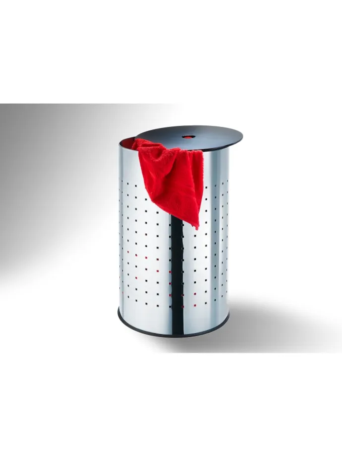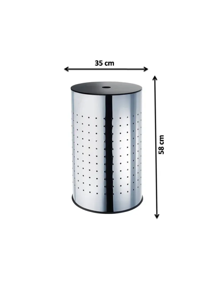 Stabiler Wäschebehälter mit 55 Liter Fassungsvermögen aus extra stabilem 0,38 mm Edelstahl mit Deckel von Kobolo. Dieser Wäschebehälter ist ein toller Blickfang für jedes moderne Bad. Das dekorative Lochmuster sorgt zudem für eine gute Belüftung ihrer Wäsche. Im Lieferumfang enthalten ist ein passender Deckel aus schwarzem stabilen MDF.