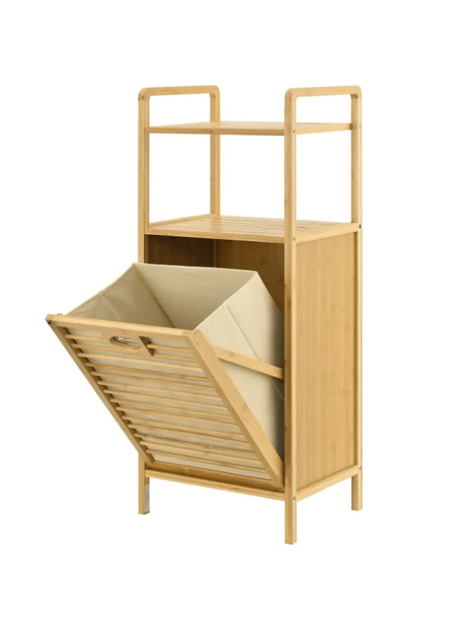 – Wäscheregal: Bambus- Wäschetasche: Vlies