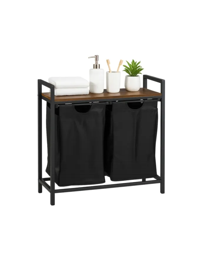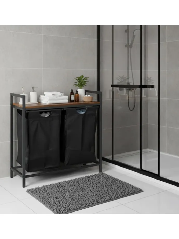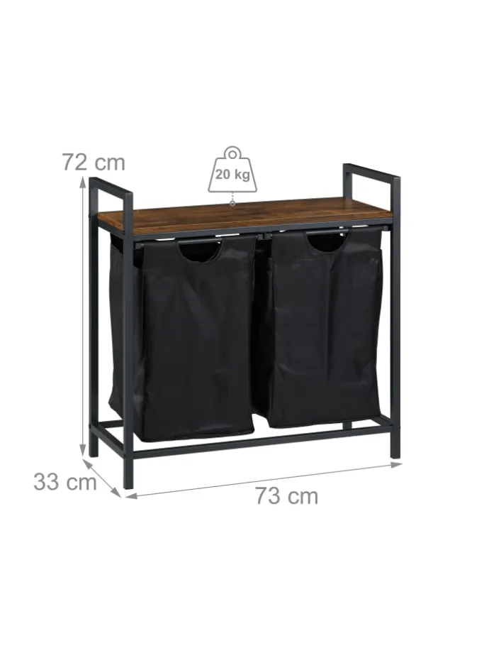 Verstaue Deine Schmutzwäsche ordentlich bis zum nächsten Waschgang. Der Wäschesammler mit zwei herausnehmbaren Wäschekörben sorgt für eine diskrete Aufbewahrung und ein einfaches Vorsortieren von Wäsche. Die stabile Ablagefläche des Wäschebehälters bietet Platz für Handtücher oder Waschmittel. Das moderne Design aus robustem Metall und abwaschbaren Oxford-Stoffsäcken macht den Wäschekorb zum dekorativen Alltagshelfer in jedem Bad, Schlafzimmer oder in der Waschküche.