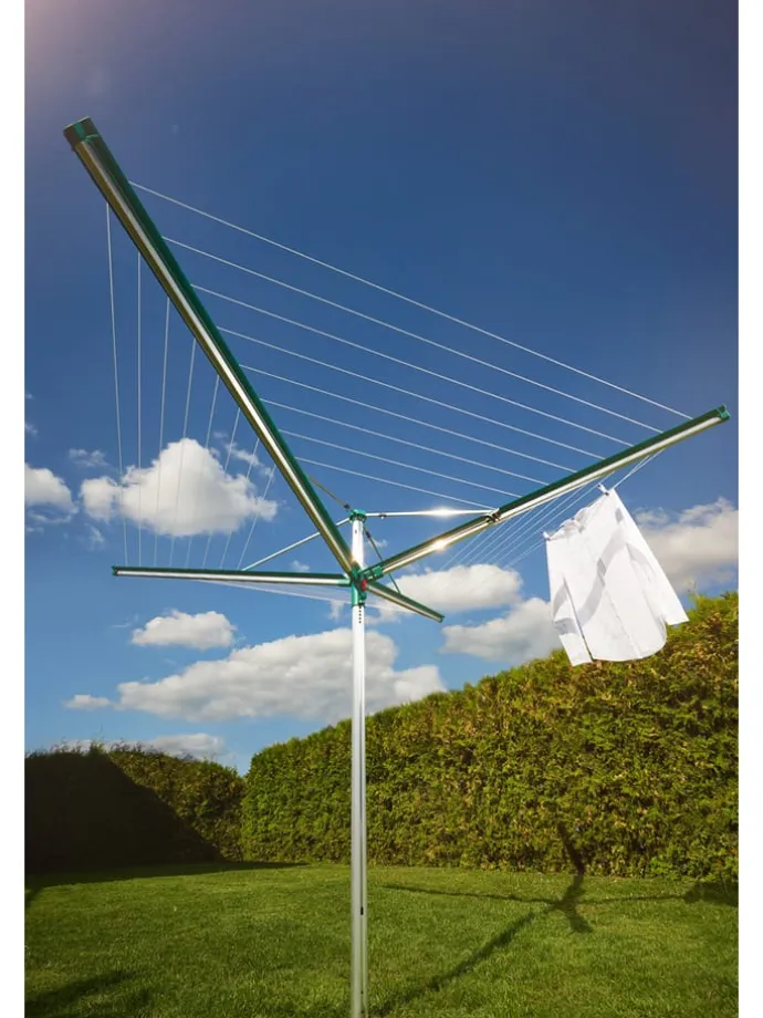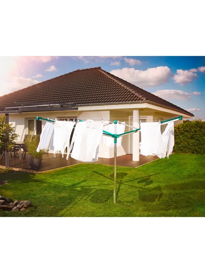 – automatischer Leineneinzug in den Tragarmen schützt vor Nässe und Schmutz