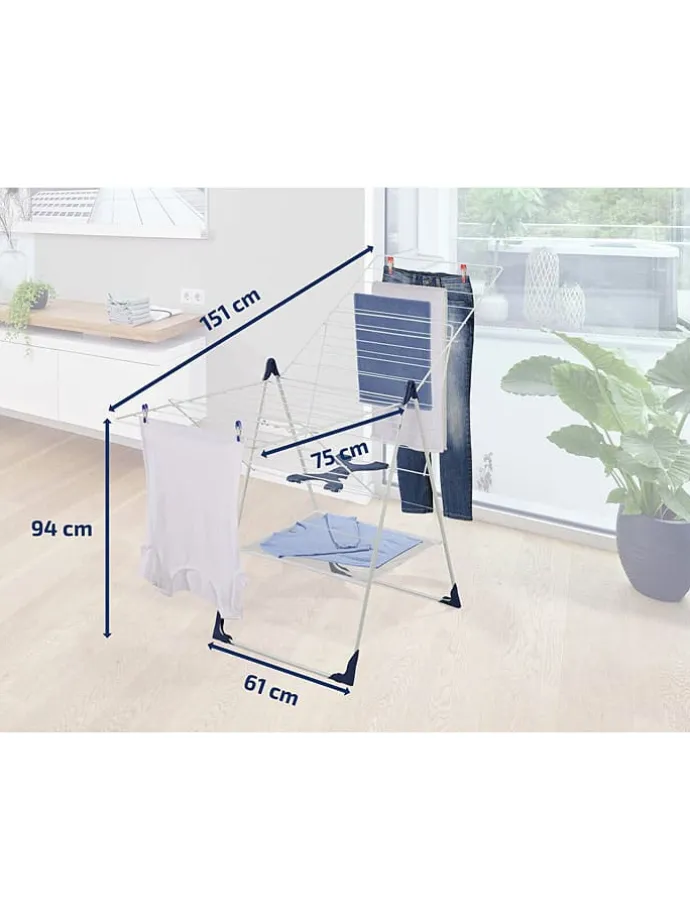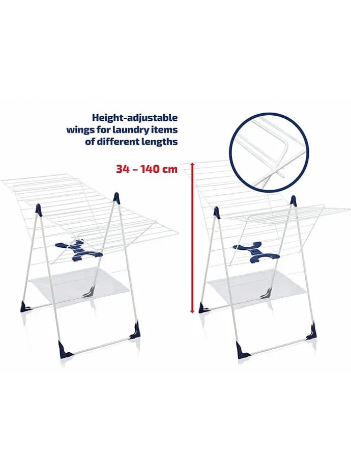 – höhenverstellbare Flügel für unterschiedlich lange Wäschestücke
