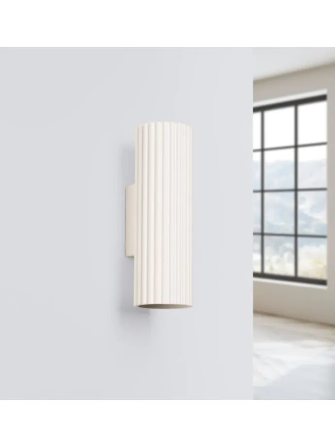 Fassung: 2x GU10 bis 10W | Farbe: Creme | Material: Aluminium | Spannung: 230V | Spritzschutzklasse: IP20 | Moderne Wandleuchte aus Aluminium mit besonderem Lampenschirm in hellem Creme | Das Licht der Up Down Lampe scheint nach oben und unten und erlaubt eine indirekte Beleuchtung- ideal als Flurlampe, Treppenlampe, Wohnzimmerlampe und Schlafzimmerleuchte | Die geriffelte Oberfläche sorgt für einen dekorativen Look, der sich leicht in viele Einrichtungsstile einfügt | Dank ihrer geringen Größe passt die Wandlampe auch in kleine Räume und schmale Gänge | Freie Leuchtmittelwahl: Helligkeit und Lichtfarbe können durch selbst gewählte LED-Leuchtmittel variiert und auf jeden Raum abgestimmt werden | nicht inklusive