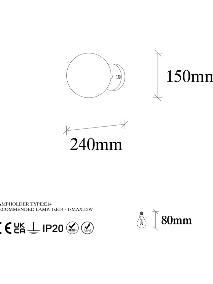 – Leuchtmittel: E14, max. 40 W