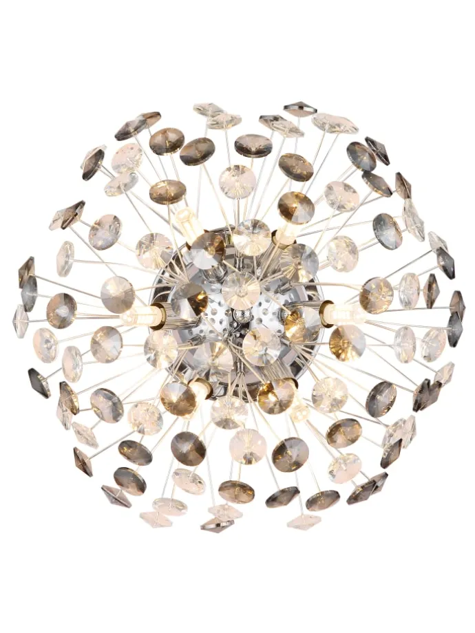 Wandleuchte Metall verchromt, K9 Kristalle rauchfarben, klar, ø: 400mm, AL: 225mm, inkl. 6x G9 LED 3.5W 230V, 350lm Source, 350lm Output, 3000K, inkl. LED Leuchtmittel 10676
