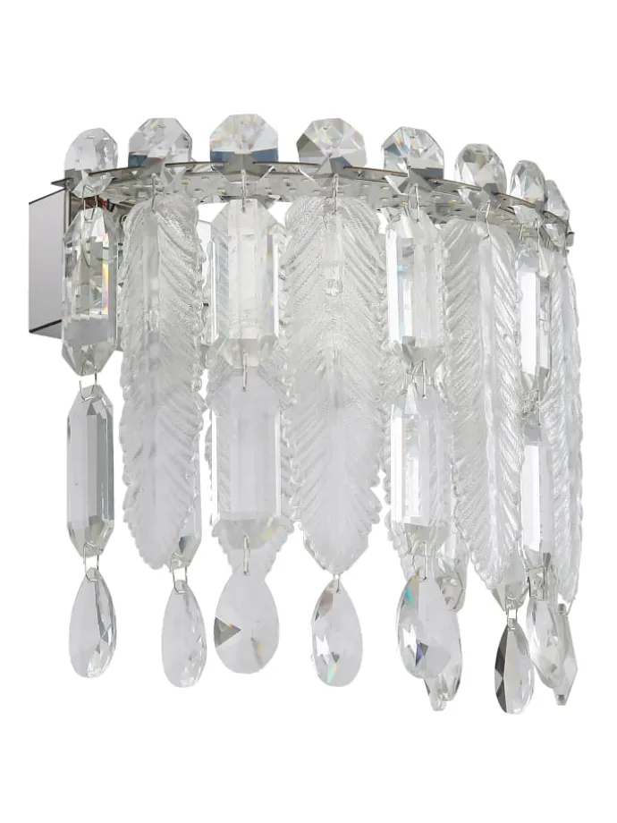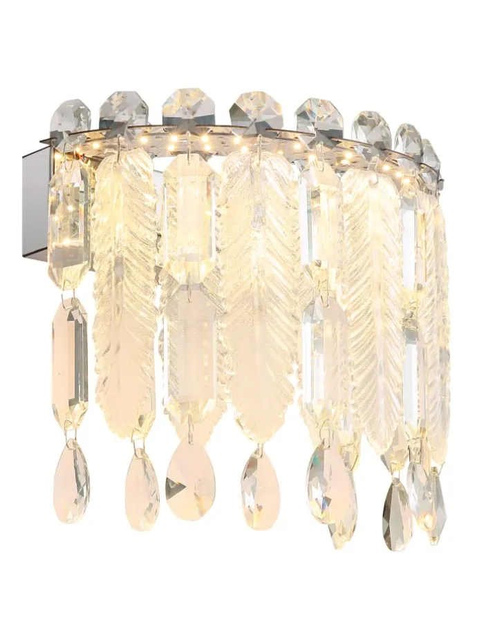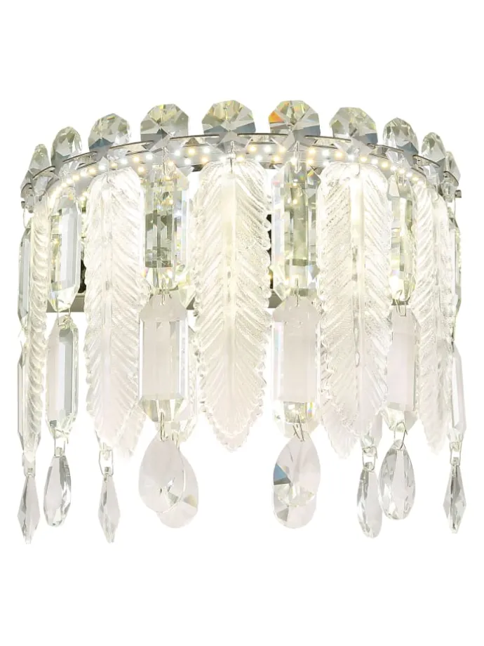 Wandleuchte Metall verchromt, K5 Kristalle klar, Glaskristalle klar, Touch Ein/Aus, stufenloser Touchdimmer, Farben fixierbar, Memoryfunktion, BxH: 280x245mm, AL: 170mm, inkl. LED 12W 230V, 150-1468lm Source, 95-895lm Output, CCT 2700/4000/6000K