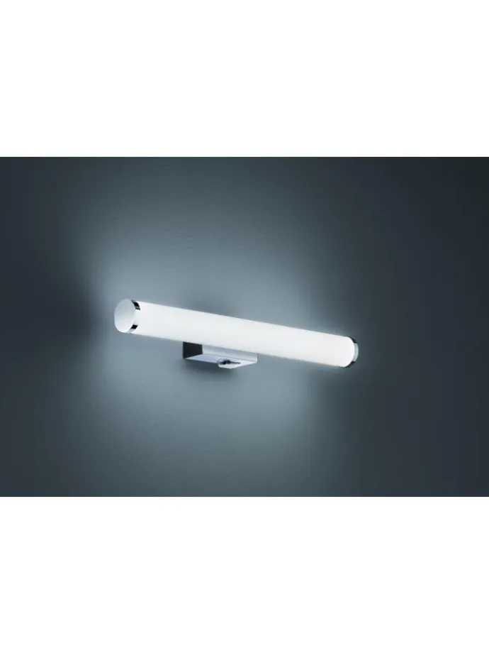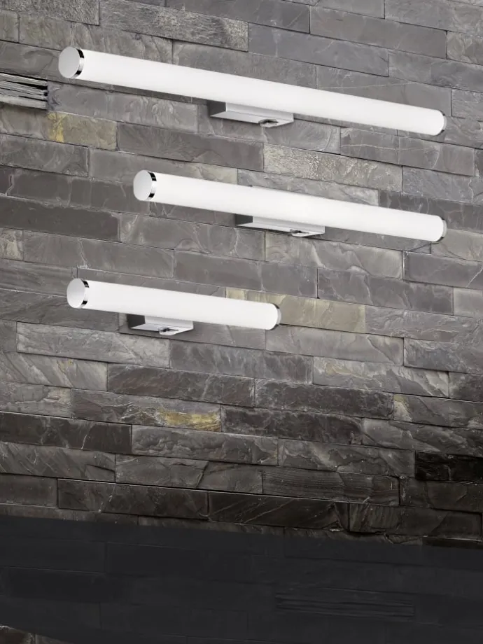 Die schlichte Wandleuchte MATTIMO fügt sich wunderbar in den gewünschten Anwendungsbereich ein. Durch die Schutzart IP44 ist die Leuchte gegen Spritzwasser geschützt und kann problemlos in Feuchträumen wie dem Badezimmer eingesetzt werden. Das längliche Design findet sich optimal neben oder über dem Spiegel im Waschbereich wieder und sorgt für stilsichere Akzente. Darüber hinaus gibt die Leuchte über eine Breite von 40,5 cm ein sanftes und harmonisches Licht aus, welches sich gleichmäßig im Anwendungsbereich verteilt und eine ausreichende Lichtversorgung bietet. Die Leuchte kann wie gewohnt über den Wandschalter oder über einen integrierten Schalter an der Leuchte ein- und ausgeschaltet werden. Die Kombination aus Chrom und weißem Kunststoff lässt sich harmonisch in das Gesamtbild einfügen. Darüber hinaus verfügt die Leuchte über eine moderne LED Technologie, die sich durch eine hohe Lichtqualität und Energieeffizienz auszeichnet. Im Vergleich zu herkömmlichen Halogen Leuchtmitteln lassen sich bis zu 80% der Energiekosten sparen. Zusätzlich haben LED Lichtquellen eine lange Lebensdauer, produzieren weniger Wärme und schonen die Umwelt.