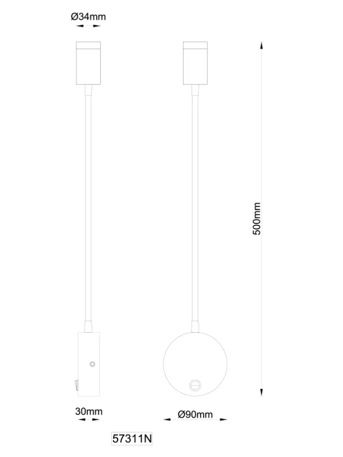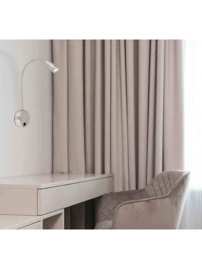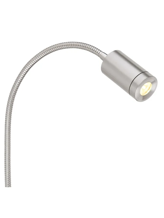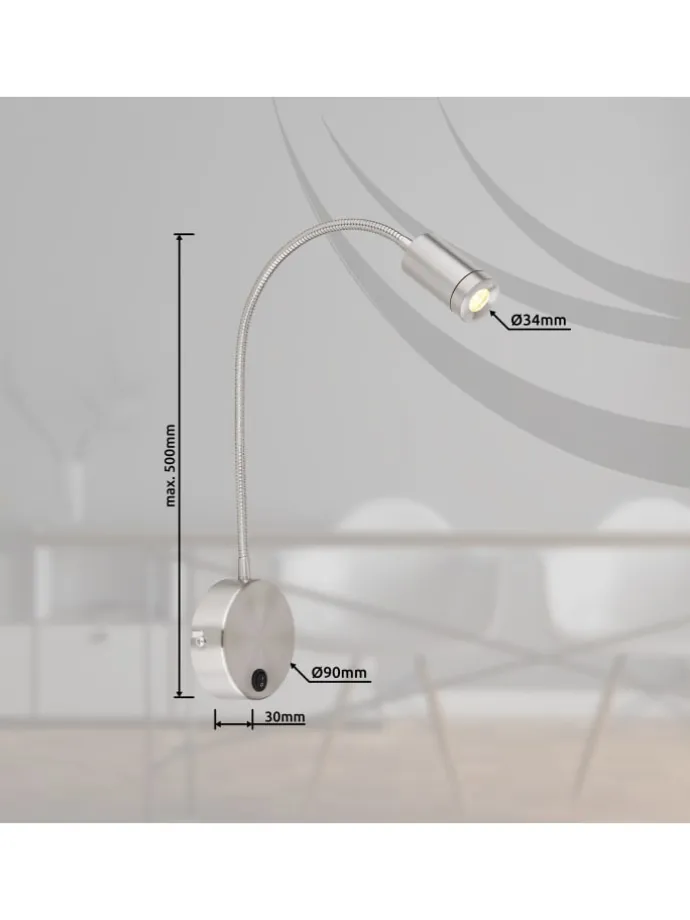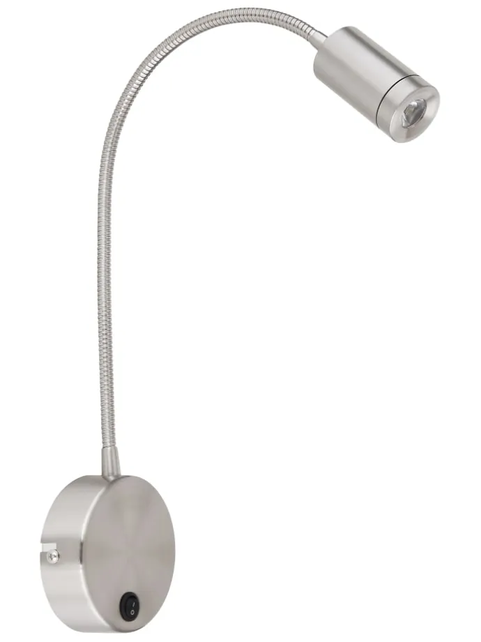 Wandleuchte Metall Nickel matt, Kunststoff schwarz, Nickel matt, Wippschalter am Artikel, Flexo, BxH: 90x500mm, AL: 350mm, inkl. LED 3W 230V, 189lm Source, 180lm Output, 3000K
