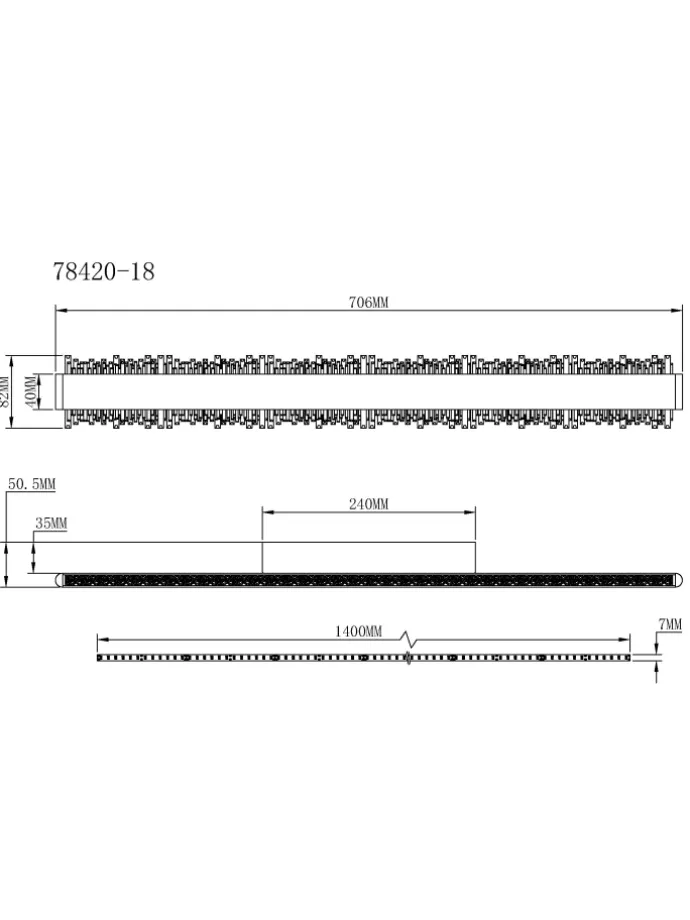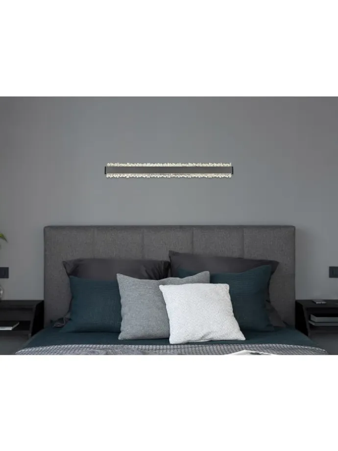 Wandleuchte Metall schwarz matt, Aluminium grau gebürstet, Acrylkristalle klar, Kunststoff schwarz matt, BxH: 705x80mm, AL: 50mm, inkl. LED 18W 230V, 2200lm Source, 1300lm Output, 4000K