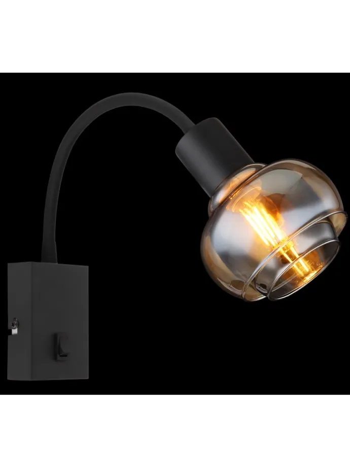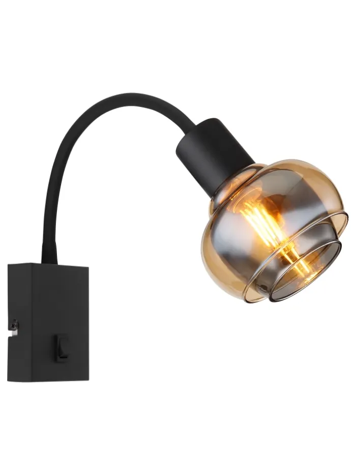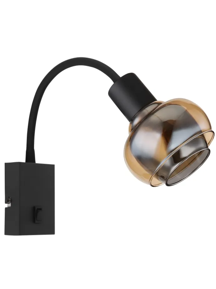 Wandleuchte Metall schwarz matt, Glas amber, Glas rauchfarben, Silikon schwarz matt, Kabel PVC Schwarz, Wippschalter am Artikel, Flexo, weitere Funktionen: Kabel am Artikel, BxH: 105x465mm, AL: 355mm, Kabellänge 1500mm, exkl. 1x E14 40W 230V