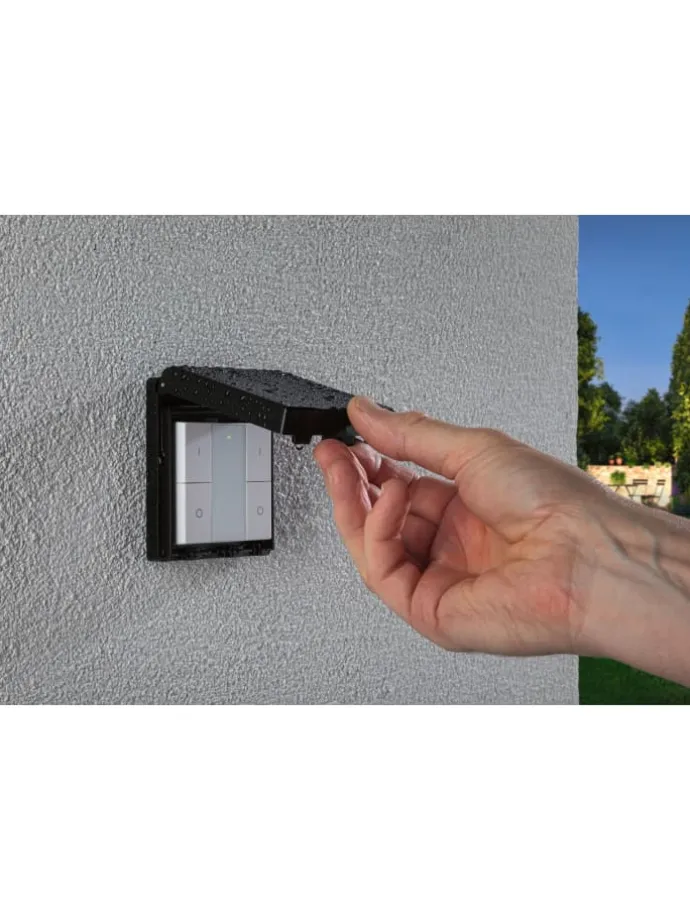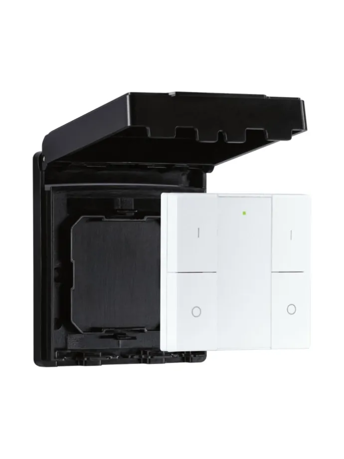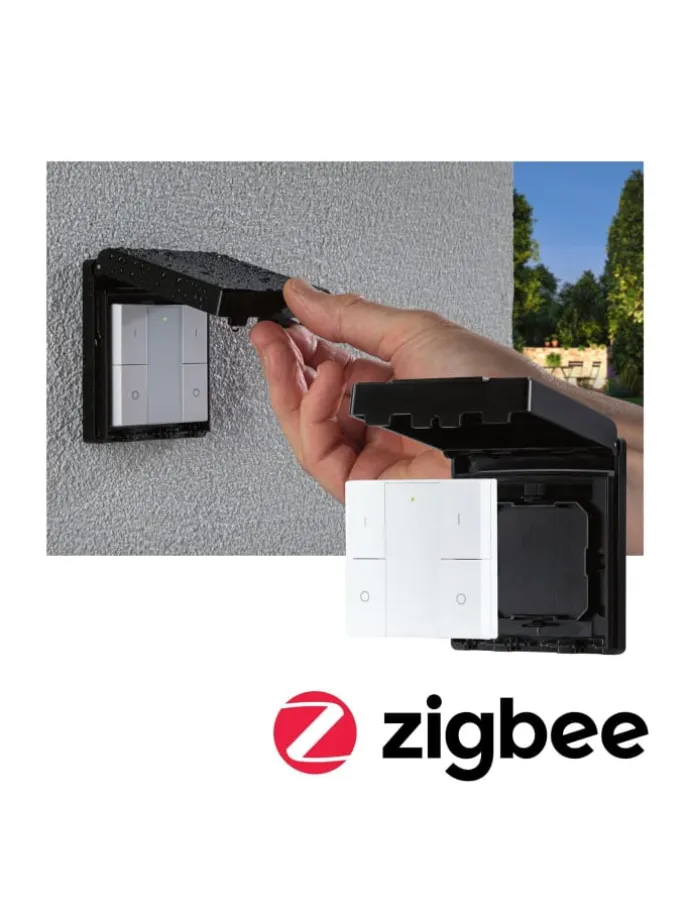 Der smarte Wandschalter erlaubt ein intuitives, direktes Schalten und Dimmen von Zigbee 3.0 Produkten ohne Smartphone oder Gateway. In Kombination mit dem Paulmann smik Gateway (Art.-Nr. 50135) kann eine individuelle Konfiguration vorgenommen werden. Nur mit der dazugehörigen Paulmann smik App lassen sich Gruppentasten individuell mit Räumen und Szenen belegen. Eine Nutzung des Wandschalters mit einem anderen Zigbee 3.0 Gateway kann je nach Hersteller möglich sein, wird jedoch von Paulmann nicht garantiert. In diesem Fall ist nach Einbindung die rudimentäre Steuerung von Zigbee 3.0 Leuchten über Touchlink möglich. Dank IP44-Schutz ist der smarte Wandschalter spritzwassergeschützt und lässt sich daher im Außenbereich verwenden.