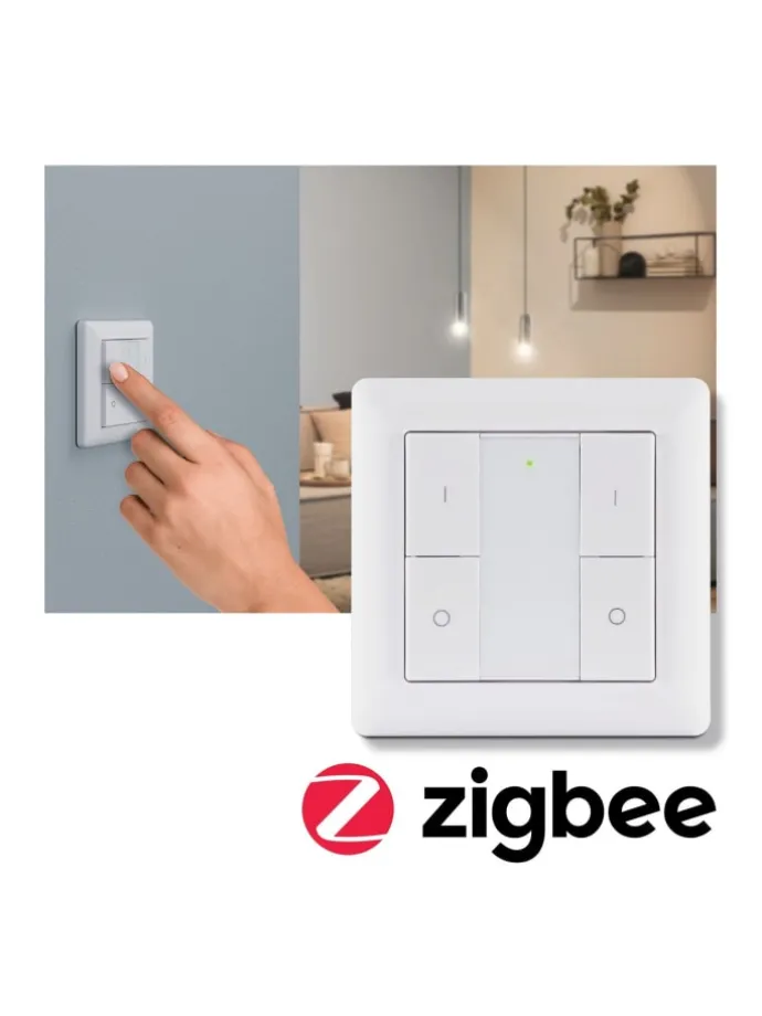 Der smarte Wandschalter erlaubt ein intuitives, direktes Schalten und Dimmen von Zigbee 3.0 Produkten ohne Smartphone oder Gateway. In Kombination mit dem Paulmann smik Gateway (Art.-Nr. 50135) kann eine individuelle Konfiguration vorgenommen werden. Nur mit der dazugehörigen Paulmann smik App lassen sich Gruppentasten individuell mit Räumen und Szenen belegen. Eine Nutzung des Wandschalters mit einem anderen Zigbee 3.0 Gateway kann je nach Hersteller möglich sein, wird jedoch von Paulmann nicht garantiert. In diesem Fall ist nach Einbindung die rudimentäre Steuerung von Zigbee 3.0 Leuchten über Touchlink möglich.