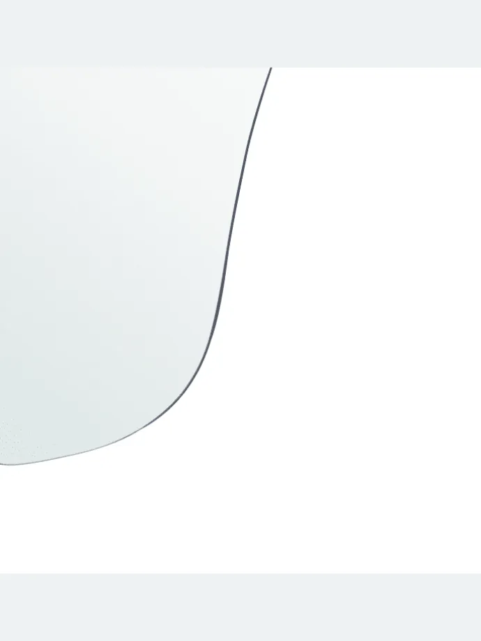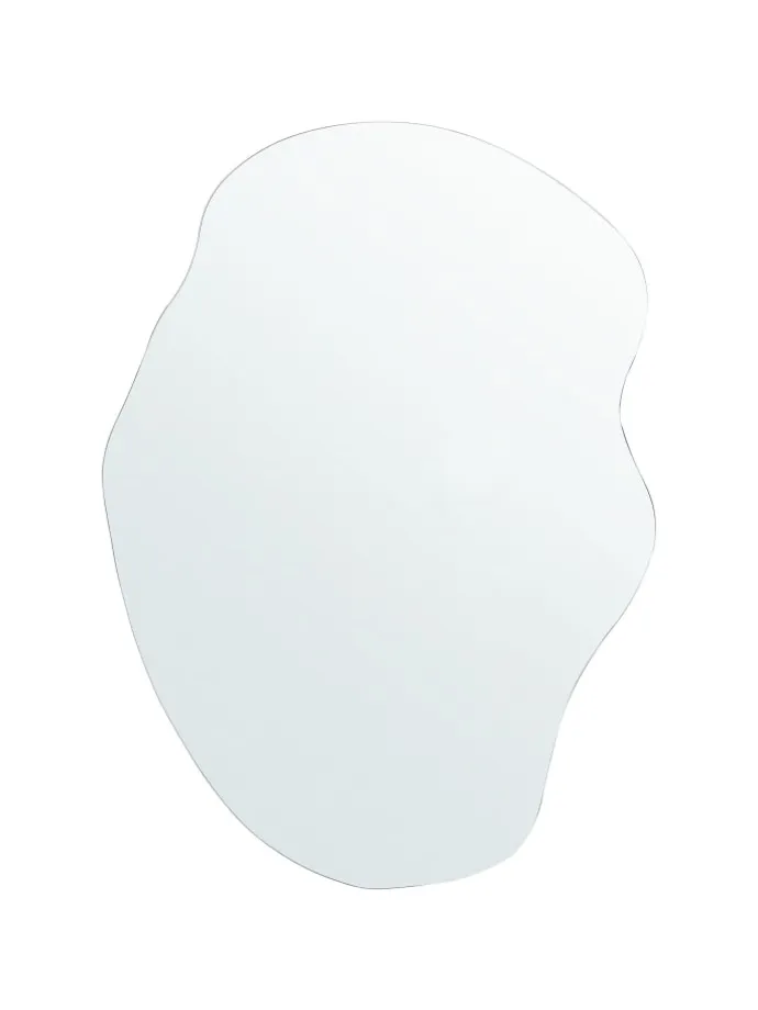 Unregelmäßiger rahmenloser Hängespiegel. Dekorieren Sie Ihr Wohnzimmer oder andere Bereiche Ihres Hauses mit diesem einzigartigen, auffälligen Spiegel. Aufgrund seiner unregelmäßigen Form kann man ihn kaum übersehen, sodass er mit Sicherheit das Hauptdekorationsstück in Ihrem Zuhause sein wird. Er ist leicht zu reinigen und kann dank der Aufhänger an der Rückseite sowohl horizontal als auch vertikal aufgehängt werden. Der Spiegel kann mit einer Vielzahl von Interieurs kombiniert werden, aber er sieht am besten in minimalistischen, skandinavisch inspirierten Räumen aus.