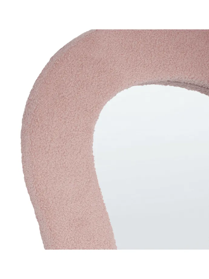Unförmiger Hängespiegel mit breitem Bouclé-Rahmen. Dieser formschöne Spiegel lenkt jeden Blick auf sich und punktet dabei auch mit seiner einzigartigen Textur. Sein breiter Rahmen besteht aus einem angenehm weichen Bouclé-Stoffbezug und benötigt nur minimale Pflege, um viele Jahre lang den Look Ihres Hauses aufzuwerten. Seine einzigartige Form und sein stilvoller Farbton finden sich in jedem modernen Wohnstil zurecht. Zudem vergrößert seine längliche Spiegelfläche optisch den Raum. Dank der integrierten Haken auf der Spiegelrückseite ist er leicht an der Wand anzubringen.