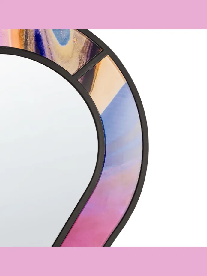 Moderner, asymmterischer Hängespiegel mit breitem Rahmen. Verleihen Sie Ihrem Raum Charakter mit diesem wunderschön gestalteten Spiegel, der moderne Schlichtheit mit einem vom Vintage-Stil inspirierten Flair verbindet. Aus robustem MDF und hochwertigem Glas gefertigt, ist er sowohl langlebig als auch stilvoll. Er eignet sich ideal für Wohn- und Schlafzimmer oder Flure und verfügt über praktische Aufhänger auf der Rückseite.