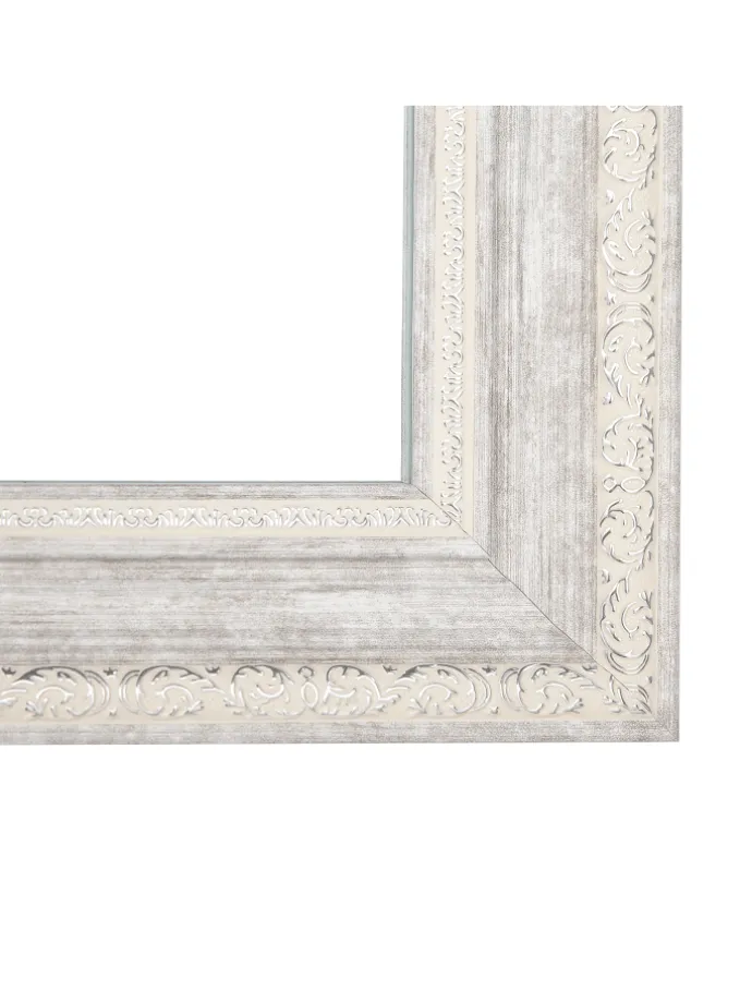 Wandspiegel mit beige-silberner Antik-Optik. Dieser Wandspiegel ist nicht nur stilvoll, sondern verleiht Ihrer Wohnung einen besonderen, edlen Touch. Der mit Ornamenten verzierte Rahmen in beige-silber hat eine elegante Ausstrahlung mit Vintage-Optik und kann je nach Bedarf vertikal oder horizontal aufgehängt oder aufgestellt werden.
