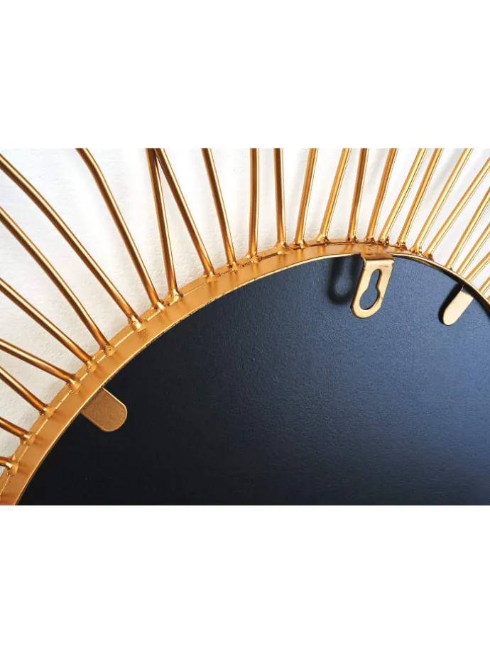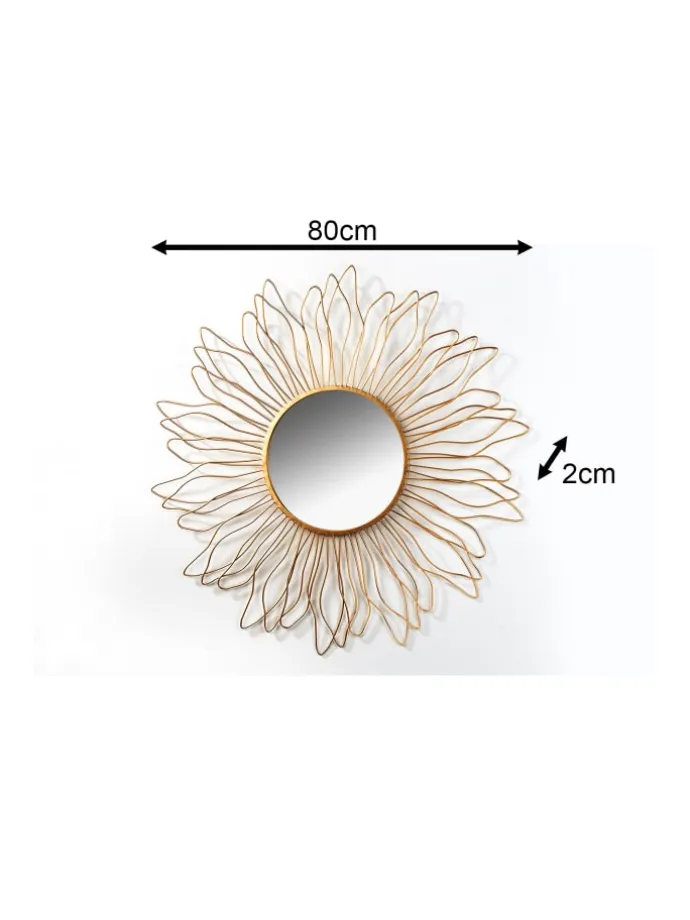 Dieser Spiegel von Kobolo wird zum absoluten Hingucker in Ihrem Wohnbereich. Egal ob im Flur, im Wohnzimmer, Schlafzimmer oder Essbereich, mit diesem modernen Wandspiegel werten Sie jedes Ambiente gekonnt auf. Mit einer Gesamtgröße von 80cm macht unser Spiegel jede kahle Wand zum Blickfang und ist ebenso praktisch wie dekorativ. Durch die Verwendung von gold lackiertem Metall und der auffälligen Umrandung erhalten Sie eine einzigartige Wanddekoration für Ihre Wohnung.