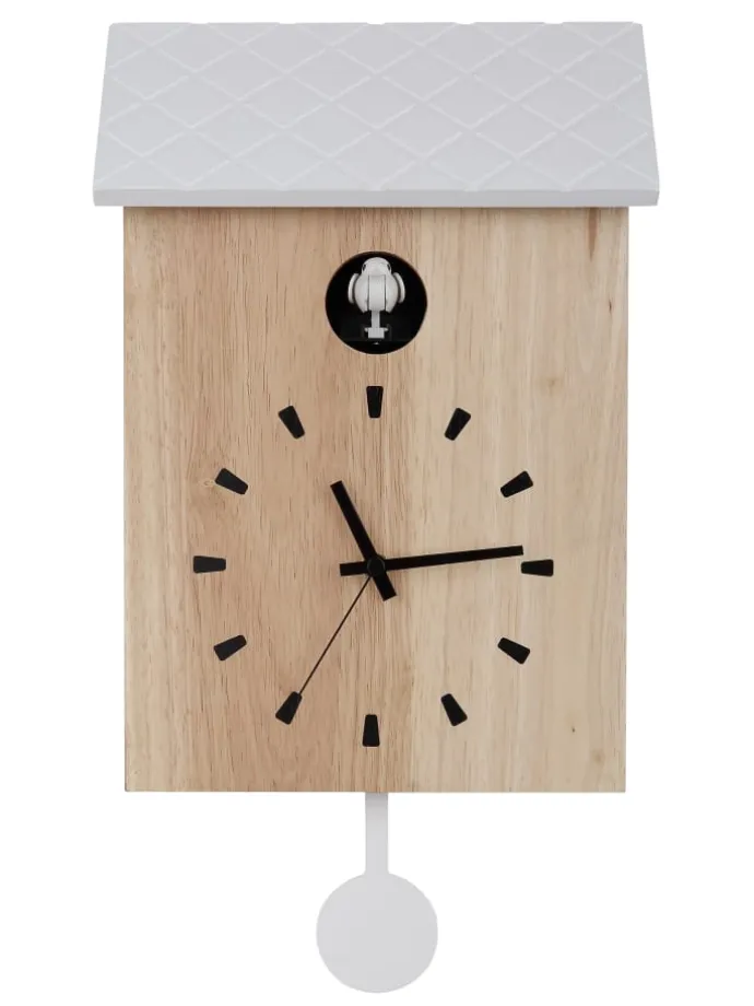 Wanduhr Holz braun, Holz weiß matt, Zeiger und Ziffern in schwarz, mit Kuckucksfunktion und Pendel, exkl. 2 x LR14 Batterien, BxH: 220x380mm, AL: 78mm, exkl.