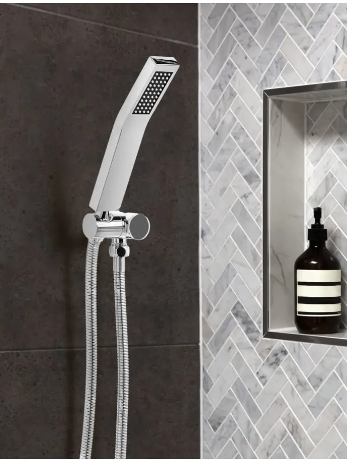 Rechteckige Handbrause. Genießen Sie ein unkompliziertes und angenehmes Duscherlebnis mit dieser praktischen Handbrause. Ihre leichte Form, der bequeme Griff und die einfache Handhabung machen sie ideal für den täglichen Gebrauch. Gefertigt aus langlebigem Messing und mit einem stilvollen Finish versehen, passt sie zu jedem Einrichtungsstil. Mit einem Strahlmodus bietet sie verlässliche Funktionalität in klarer, schlichter Form.