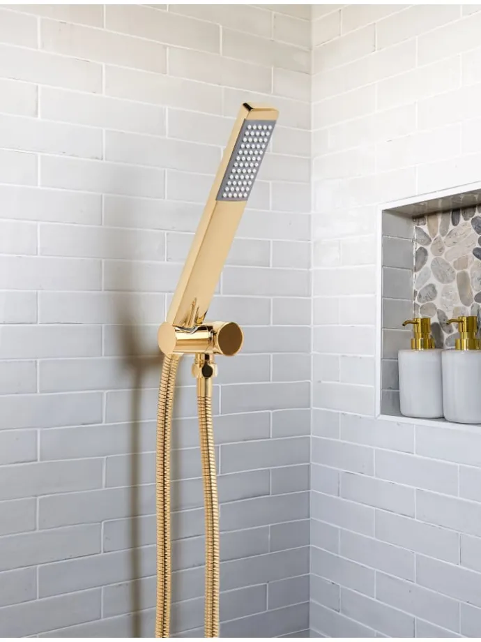 Rechteckige Handbrause. Schlicht, stilvoll und langlebig – diese Handbrause ist ein unverzichtbares Accessoire für Ihr Badezimmer. Das robuste Messingdesign verleiht einen modernen Akzent, während die ergonomische und leichte Bauweise eine komfortable Nutzung im Alltag garantiert. Mit einem Strahlmodus sorgt sie für ein unkompliziertes, aber wirkungsvolles Duscherlebnis.