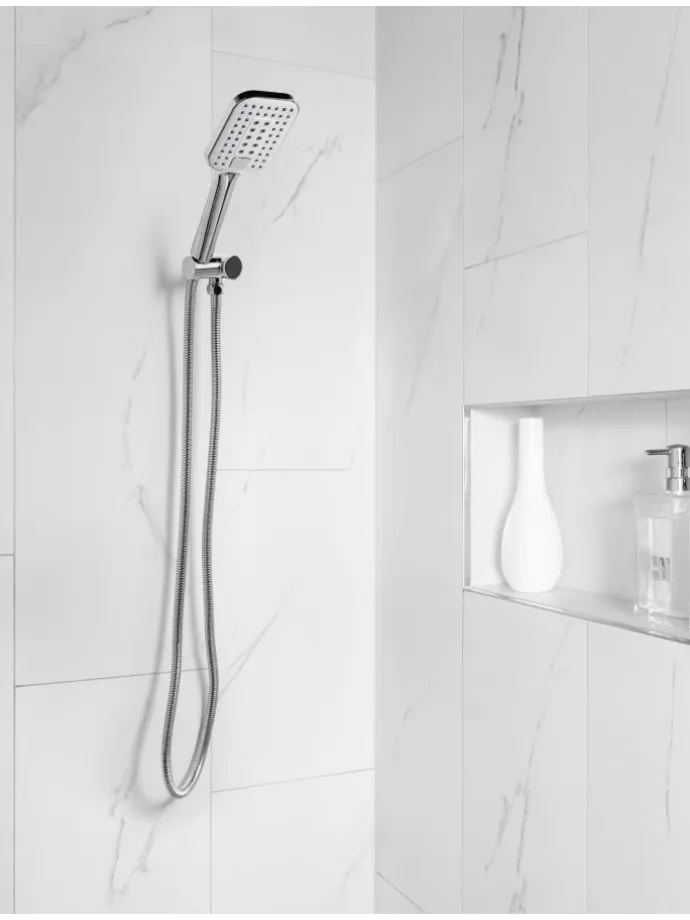 Metall-Handbrause mit Schlauch. Dieses Duschset bietet täglichen Komfort und Funktionalität. Es ist mit einem flexiblen Schlauch sowie vier vielseitigen Strahlarten ausgestattet: zwei Regenfunktionen, Massage und eine Kombination beider. Dank der leicht zu bedienenden Umstellung der Strahlarten lässt sich das Duscherlebnis individuell gestalten – ob zur sanften Entspannung, zur gezielten Muskelmassage oder für ein angenehmes Regengefühl. Hergestellt aus hochwertigem Kunststoff und langlebigem Edelstahl überzeugt das Set durch Langlebigkeit und einen modernen Look. Die Gummidüsen erleichtern die Entkalkung und sorgen für eine einfache Pflege. Das Set ist mit allen gängigen Anschlüssen kompatibel und lässt sich unkompliziert montieren.