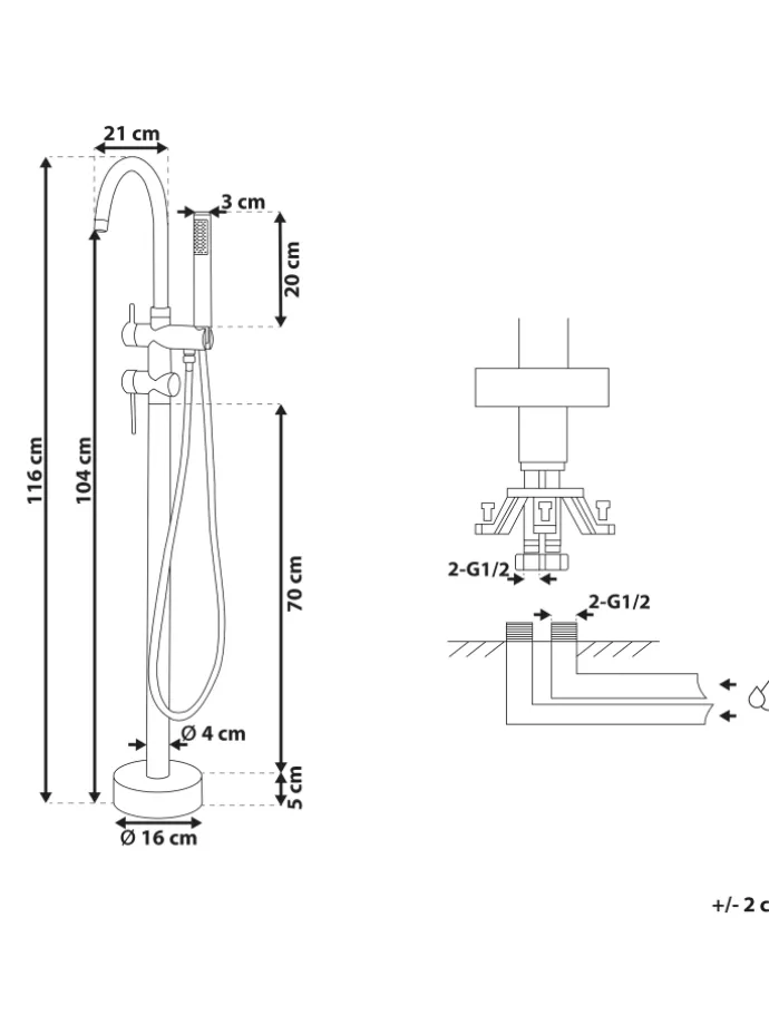 Sie kaufen: Freistehende Badewannenarmatur, 1 x Handbrause inkl. Anschlussschlauch, Montagematerial