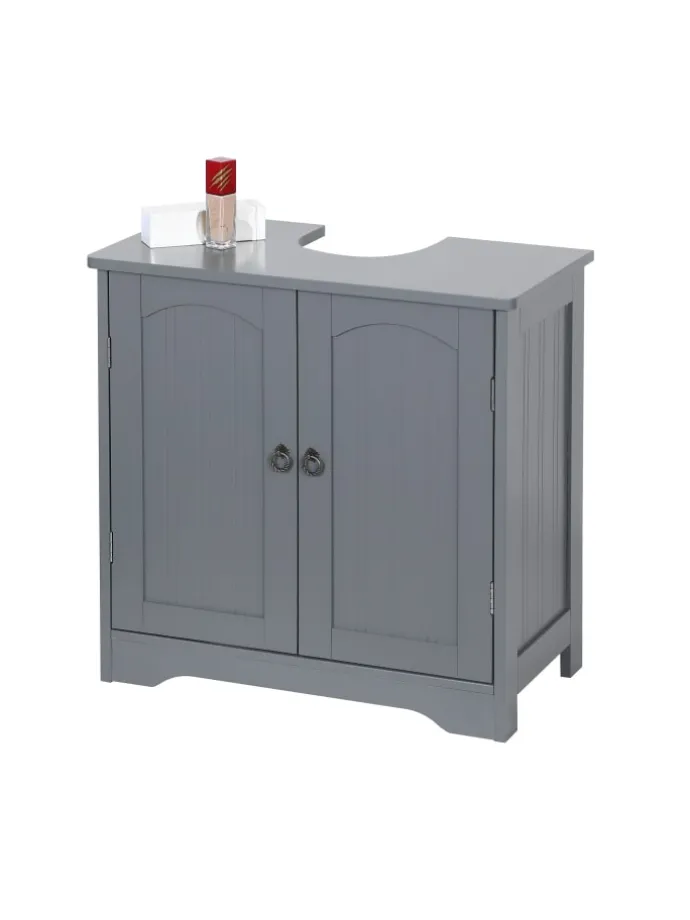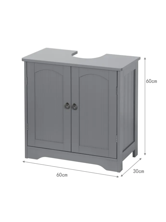 Mit diesem Badezimmerschrank nutzt Du den freien Platz unter dem Waschbecken sinnvoll aus. Vor allem in kleinen Bädern kannst Du so zusätzlichen, unverzichtbaren Stauraum schaffen. Der geräumige Innenraum des Badschranks bietet ausreichend Platz für Wasch- und Putzmittel, Toilettenpapier, Handtücher und andere Badutensilien. Das schlichte Design aus weißem MDF mit Zinkgriffen verleiht dem Unterbauschrank einen ansprechenden Look, der in jedem Badezimmer dekorative Akzente setzt.